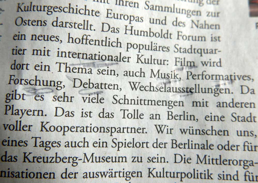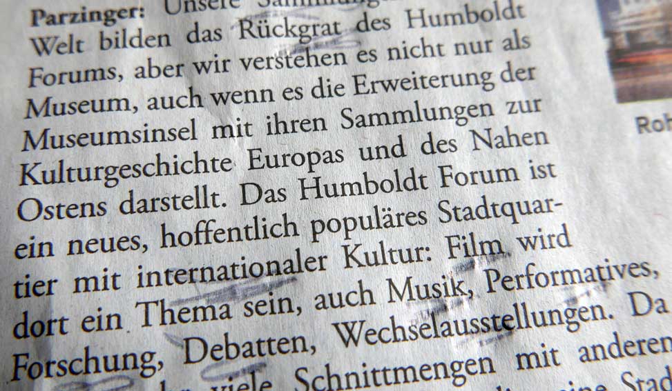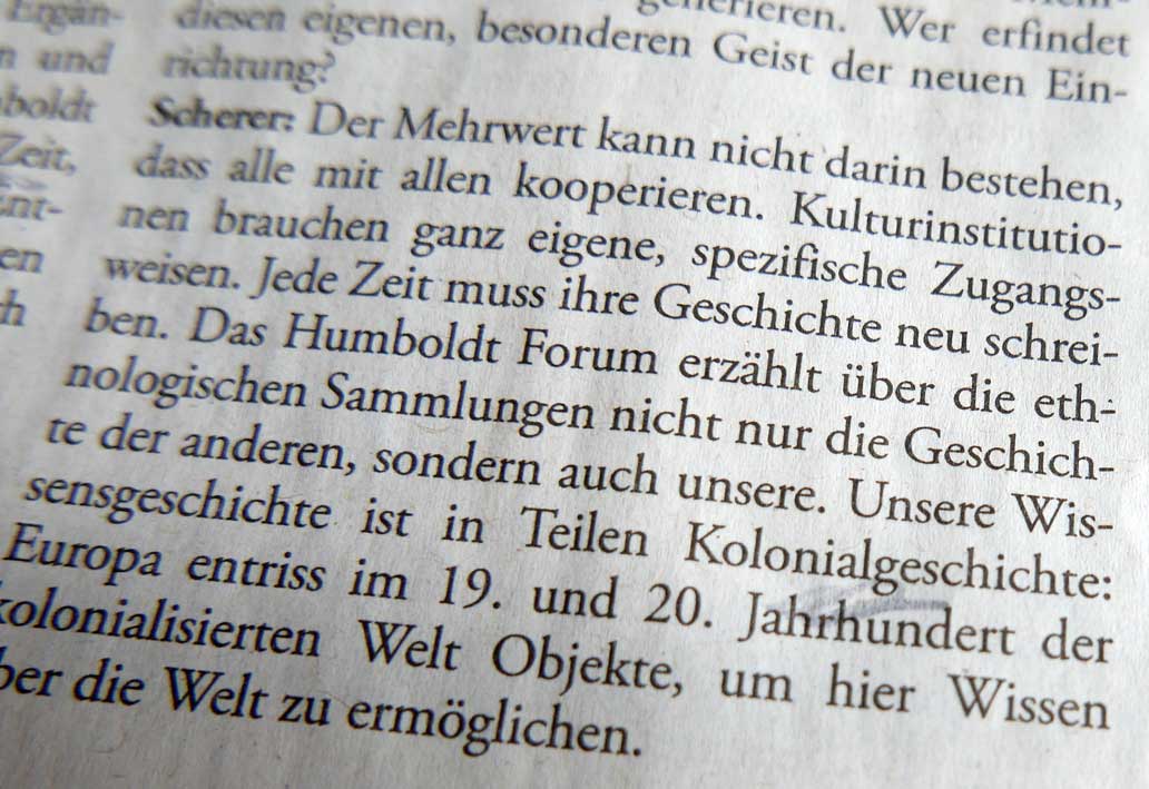 wer heute von Humboldt der weltweiten Kulturen, spricht wird auch davon, sprechen müssen.Was damit geschieht, wenn wir sie gegenwärtig mit neuen Mitteln okkupieren.