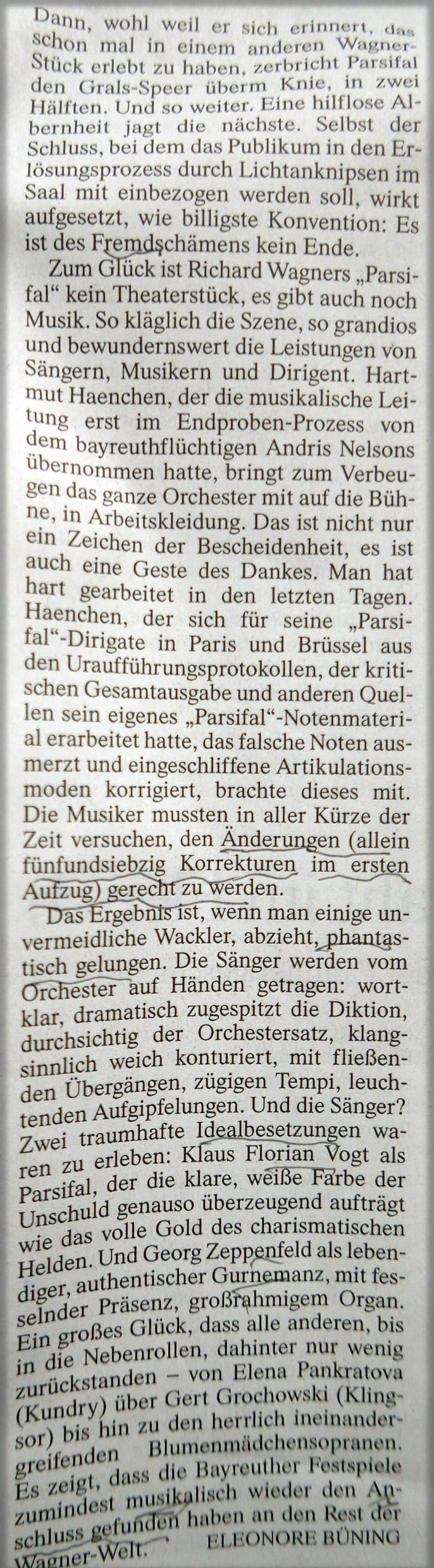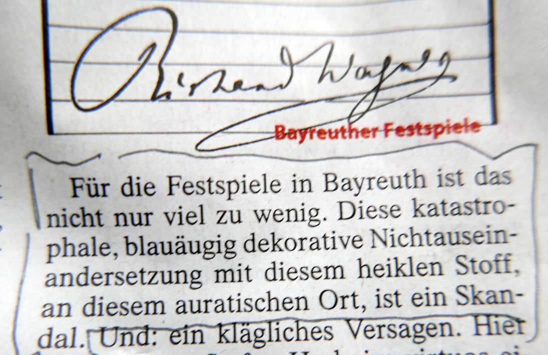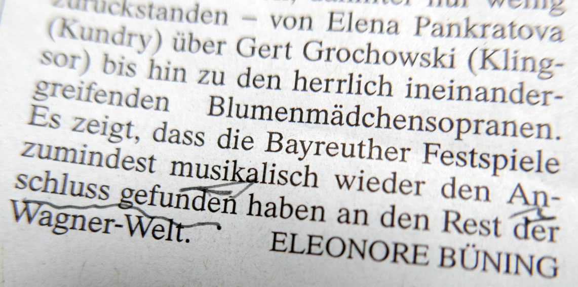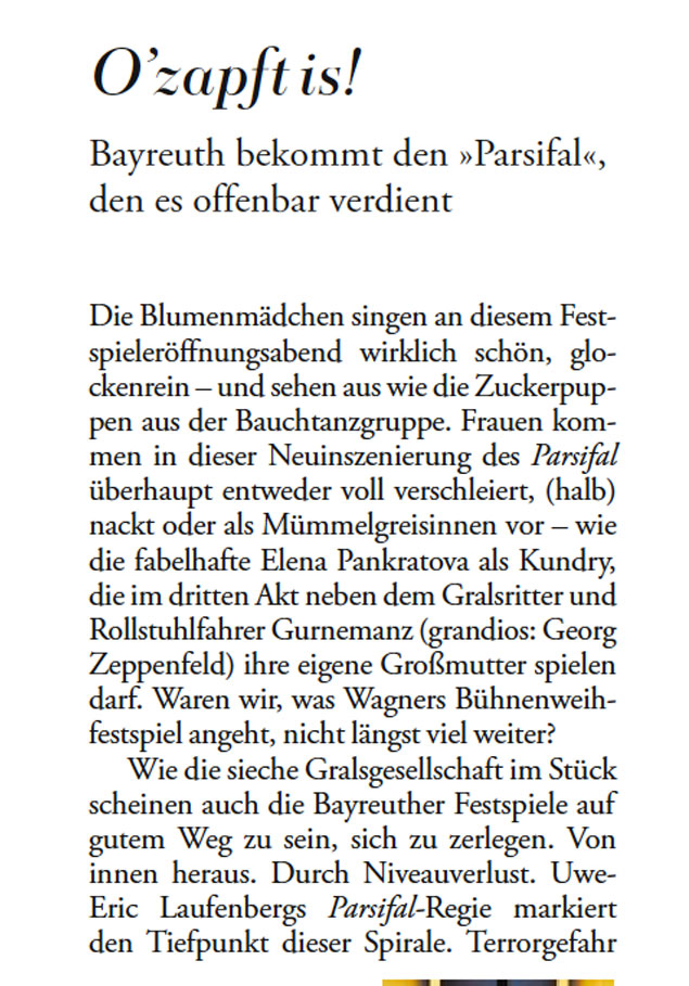 In der heutigen ZEIT eine Spalte zu Bayreuth wie es ist. Ohne Wahn-Fried ernstgenommen.