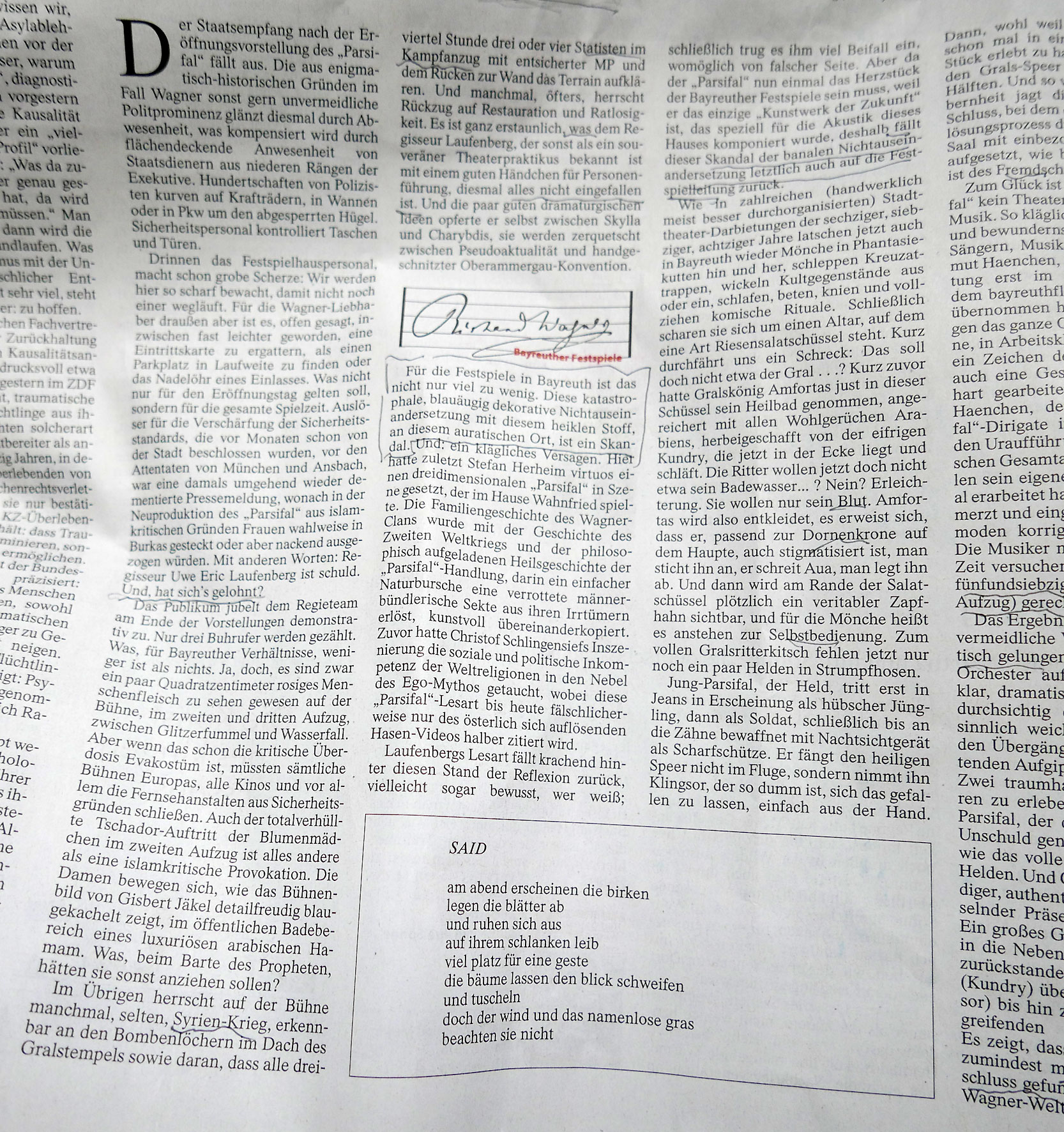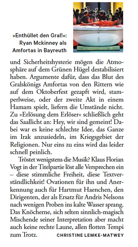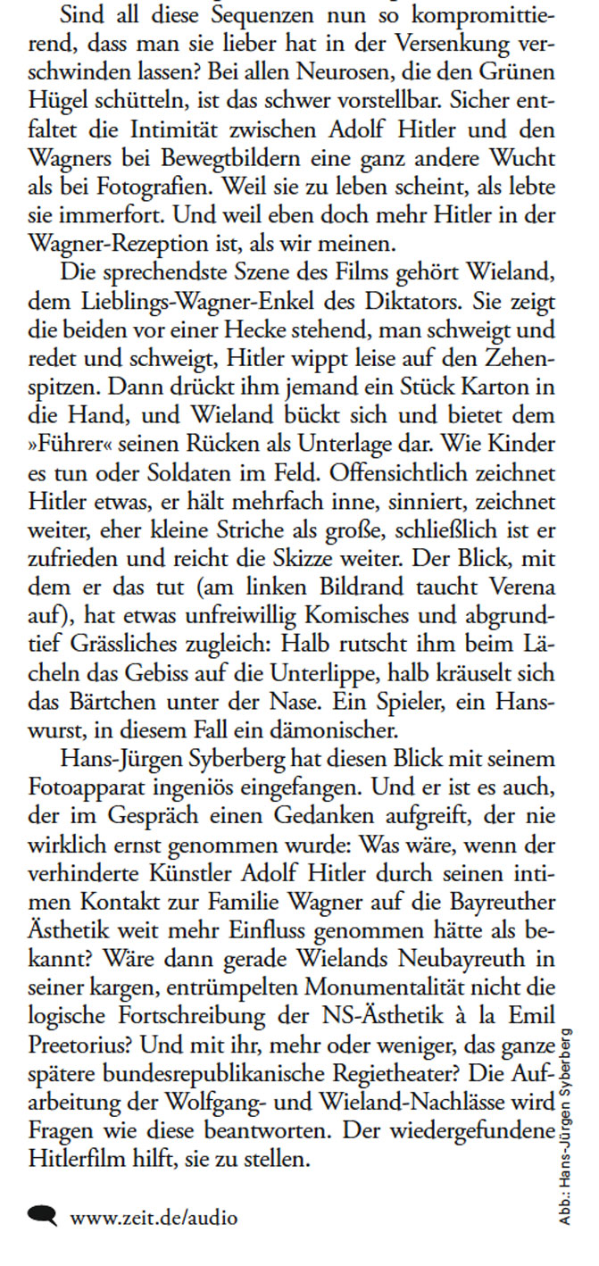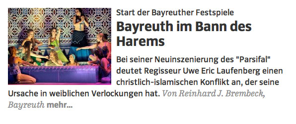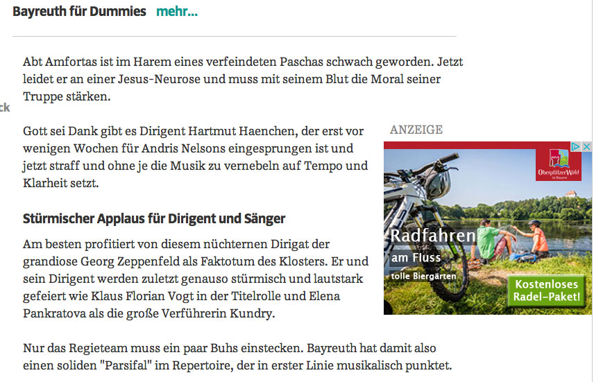 In der heutigen ZEIT eine Spalte zu Bayreuth wie es ist. Ohne Wahn-Fried ernstgenommen.