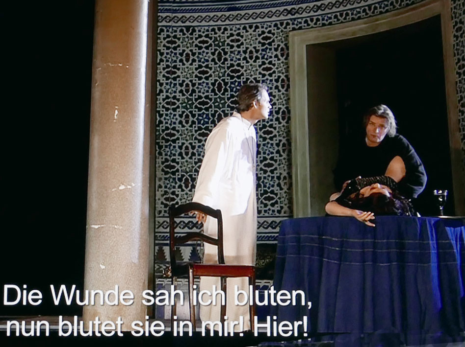 und dass dies der frühere Geliebte Amfortas ist zeigt, dass wir in einem ganz anderen Film sind, denn der ist an seinen Wunden der Liebe nun gerade zu erlösen.