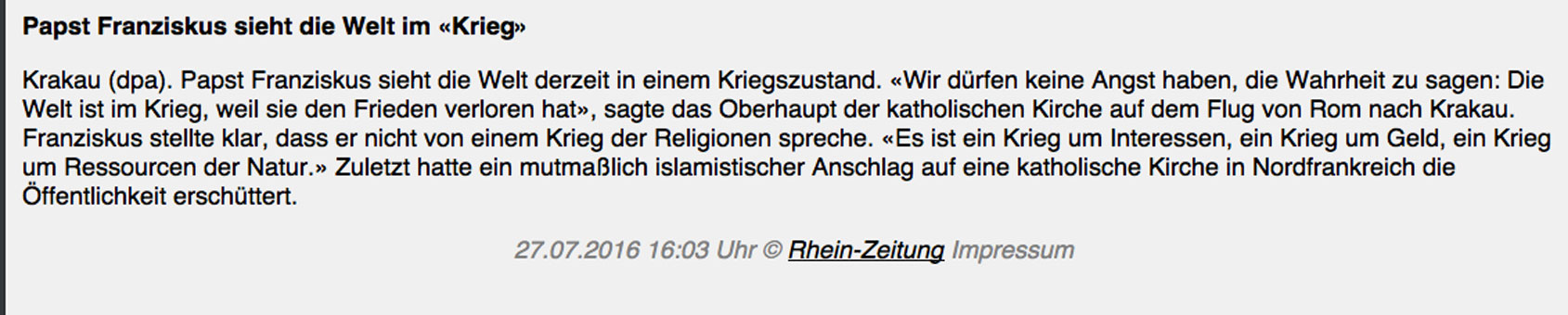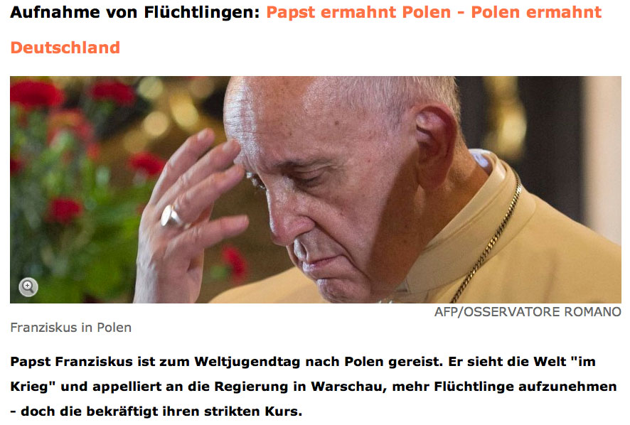 Diejenigen, die ihrer Grundrechte beraubt seien oder des Rechtes, in Freiheit und Sicherheit den eigenen Glauben zu bekennen, benötigten Solidarität, sagte das Oberhaupt der katholischen Kirche. Das Phänomen der Migration verlange "eine zusätzliche Portion an Weisheit und Barmherzigkeit, um die Ängste zu überwinden und das Optimum zu verwirklichen".