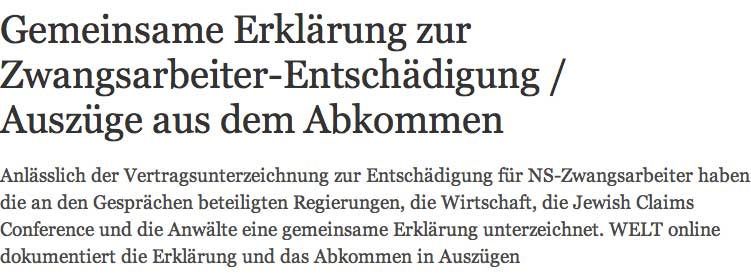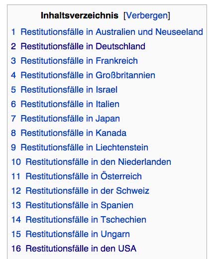 zuletzt verklagte der Erbe in den USA den dt. Staat, der einem alten sterbenden Juden den letzten des Leiends müden Blick auf sein Eigentum nicht mehr gönne.