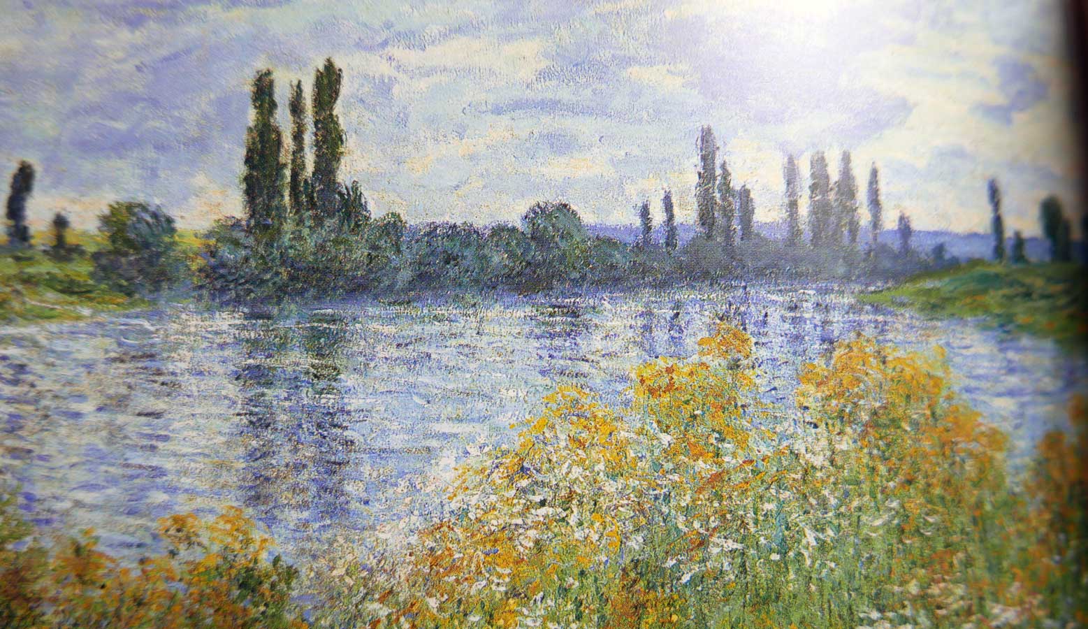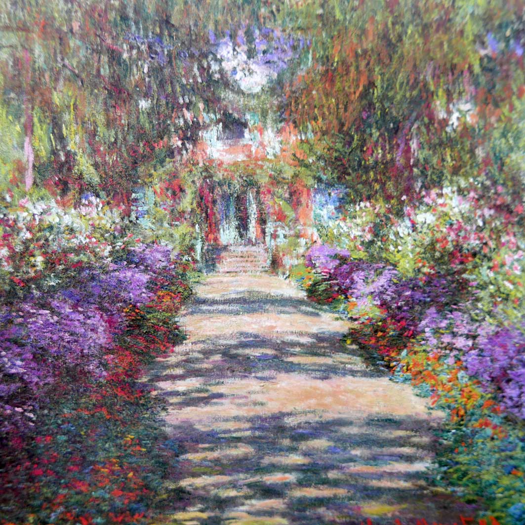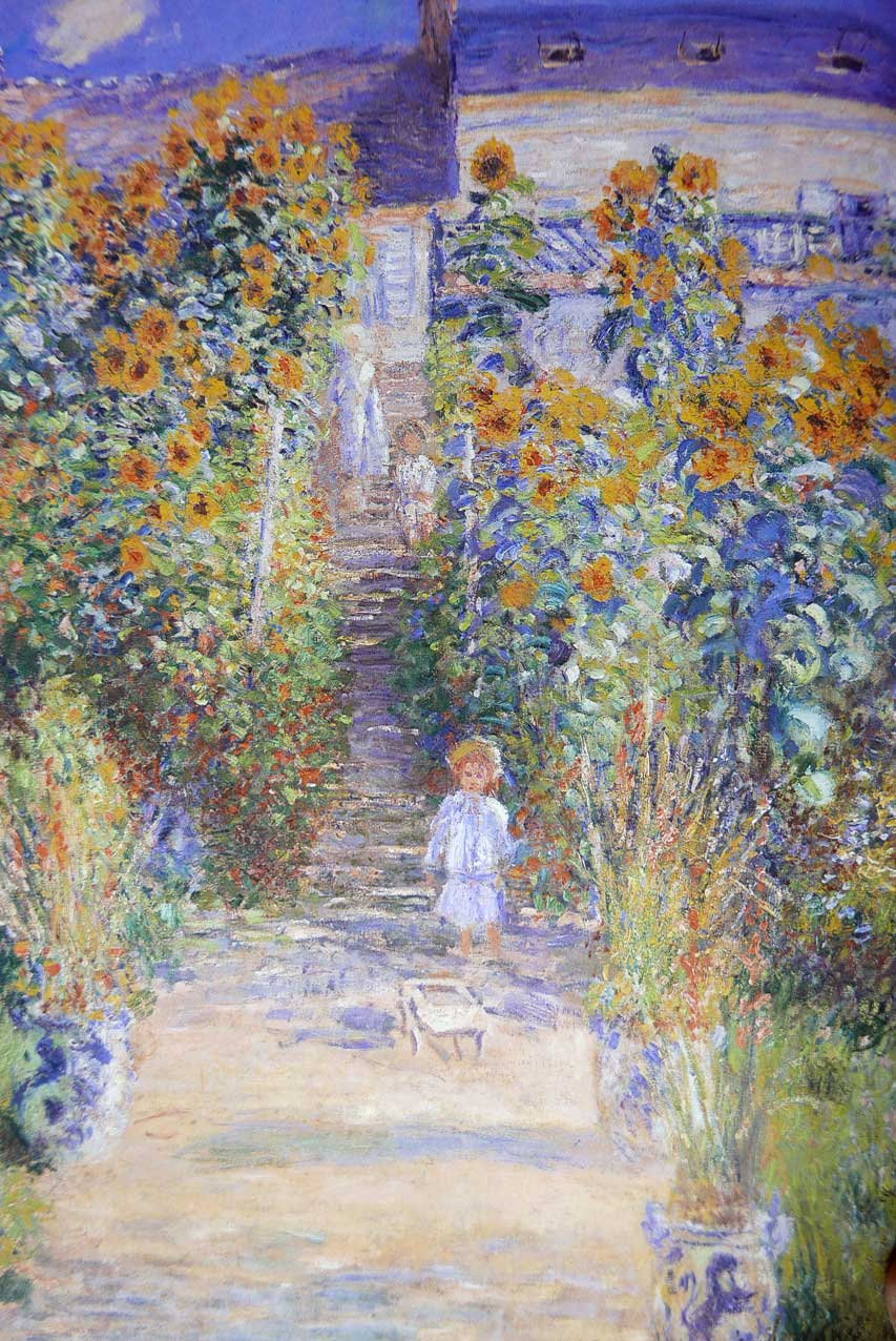 dies Bild von dem jungen Monet 1867 Frauen im Garten und damals abgewiesen von der Jury zur Ausstellungen seiner Zeit um "die Kunst zu retten" war d50 Jahre später die vom Staat eingefordert e Bedingung ein Museum dern Werkne seines Lebens zu geben. Er dachte an Gyverny das er sich als Ortr seiner letzten Bilder schuf.