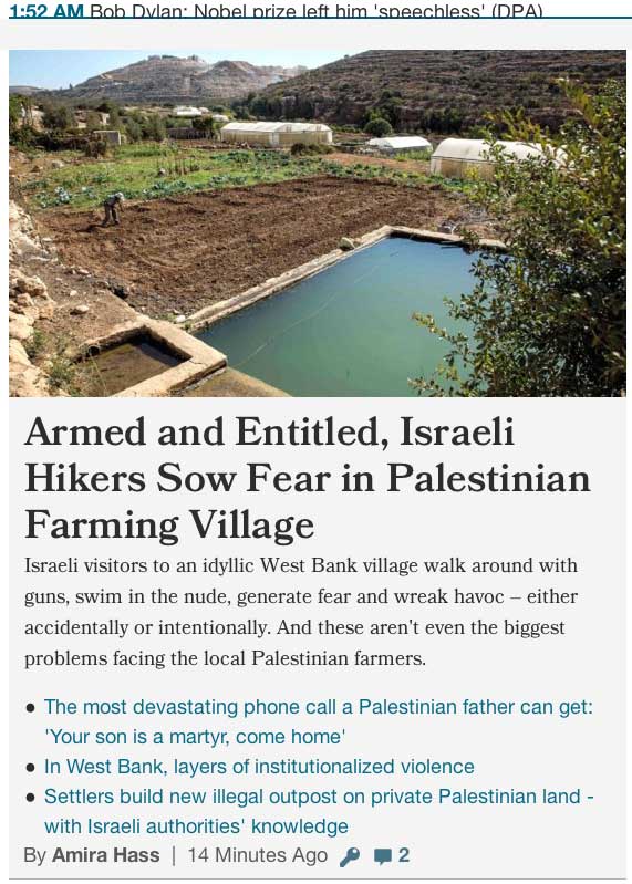 Israelische Besucher eines idyllischen Westjordanlandes gehen mit Gewehren umher, schwimmen nackt, erzeugen Angst und verheeren Chaos - versehentlich oder absichtlich. Und das sind nicht einmal die gössten Probleme der palästinensischen Bauern.