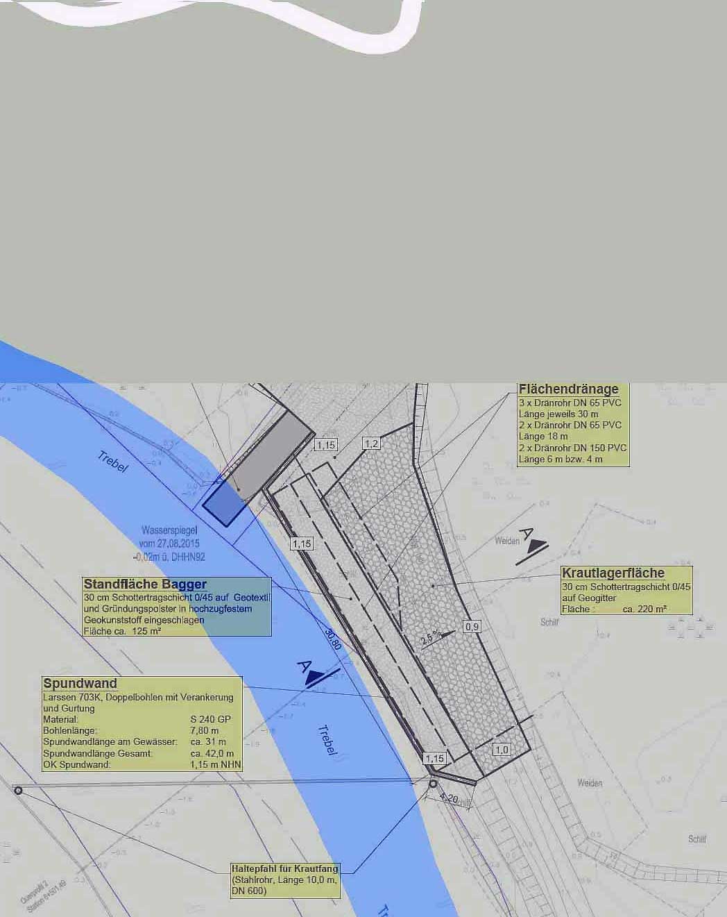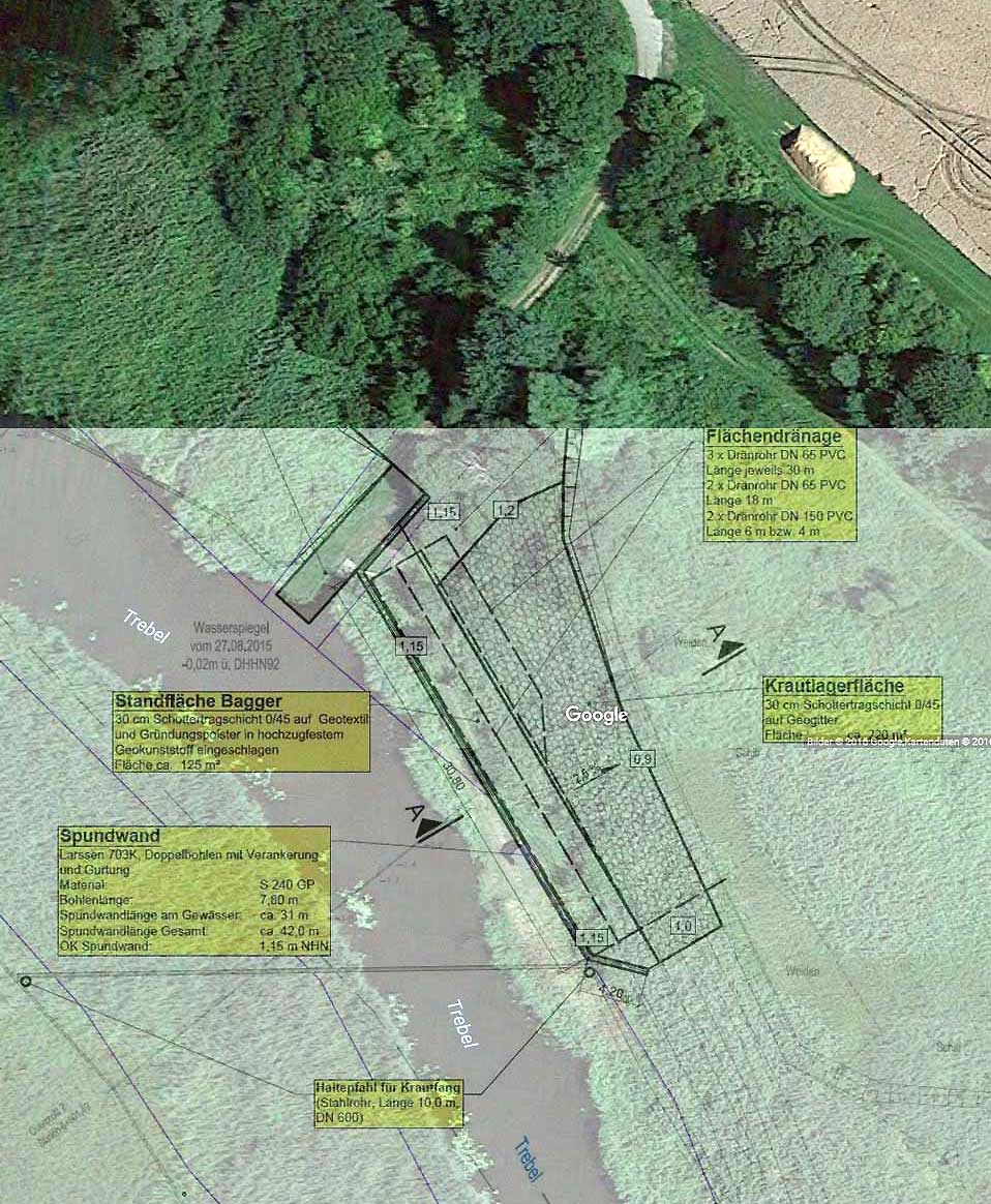 was legt an den geplanten 41 Metern Ufer aus Stahl und Betin an, wenn nicht Boote, wie sie sagen "keine Bootsanlegestelle"