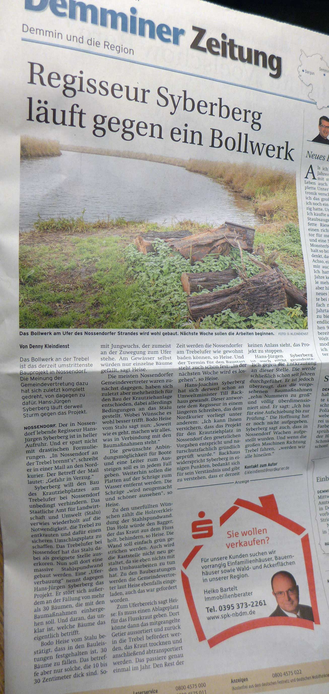 wenn woanders nicht so, prgendwer nasse Füsse kriegt, warum soll Nossendorf dafür aufkommen. Warum in Nossendorf in Entkrauten, wenn woanders die Füsse nass werden, wie sie sagen.