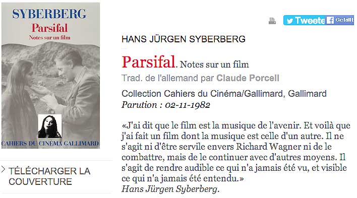 Diese Notizen zum Parsifal als Film entstanden sofort nach der Enstehung des Films, zuerst in französischer Sprache, dann in deutsch, mit einem Foto - Ablauf und Lay-out des Autors. Viel was zum Verhältnis von Musik und Film zu sagen war.