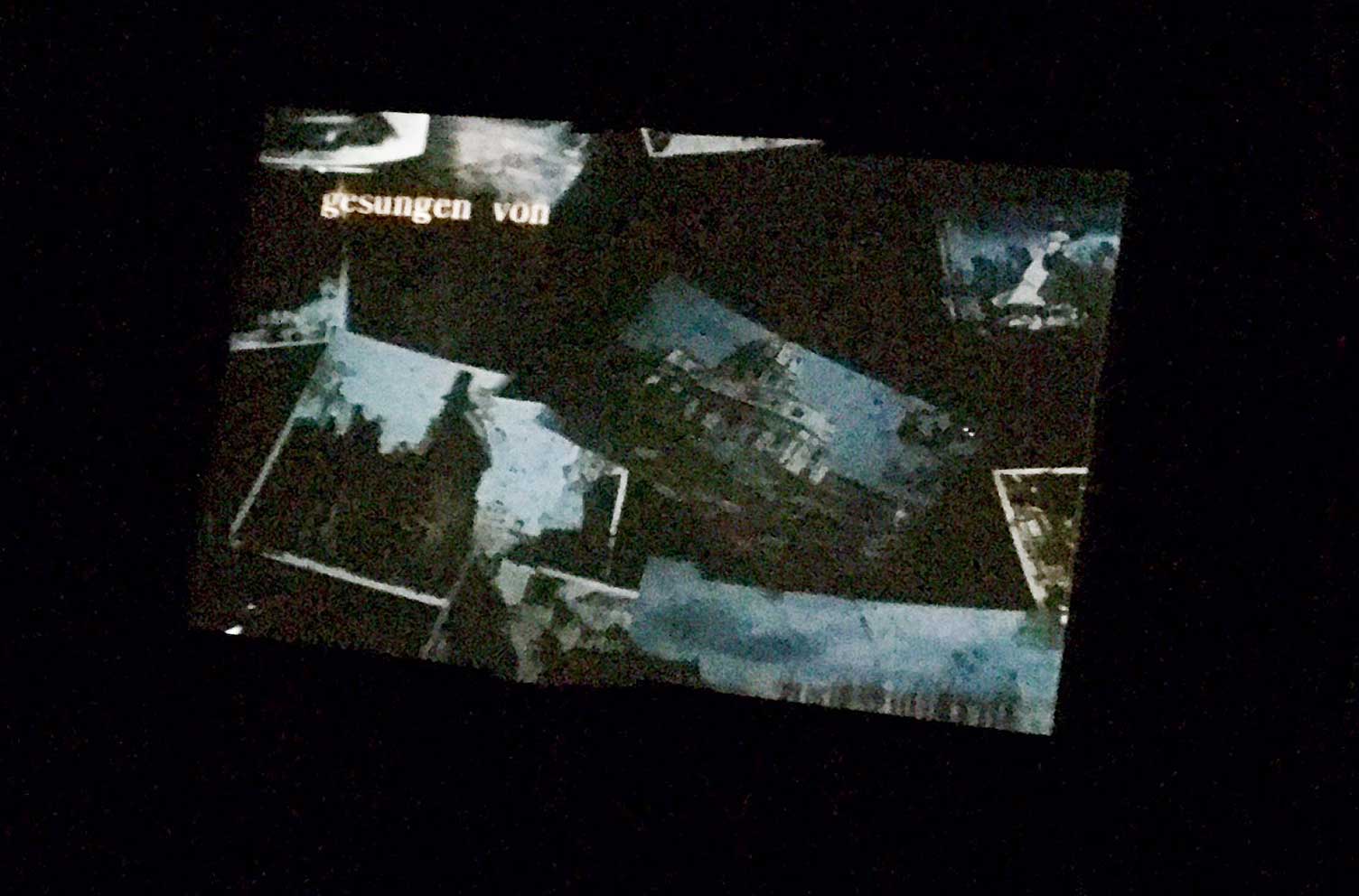 die zerstörte Welt wie damals vorgestellt (St. Peter im Wanken, die Autobahnen wölben sich hoch, die Freiheitsstatue gefallen...)am Anfang des Parsifal 100 Jahre nach seiner Uraufführung aus deren Untergang er nochmal erschien als Film nun in armer Kopie aus Paris 34 Jahre danach