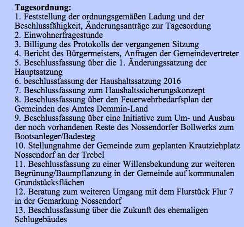 Anmerkungen für die Gemeindesitzung heute in Nossendorf.