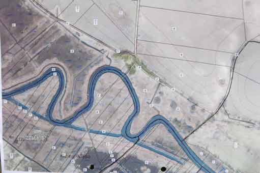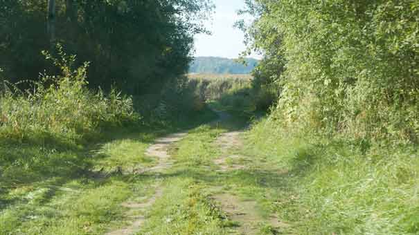 Warum nicht wie abgesprochen rechts vom Weg aus den Feldern hinab(1), wie bisher.