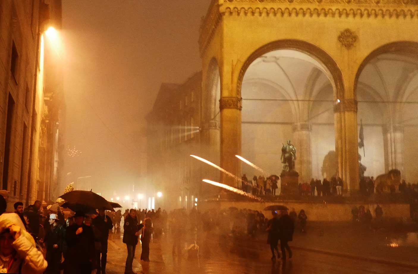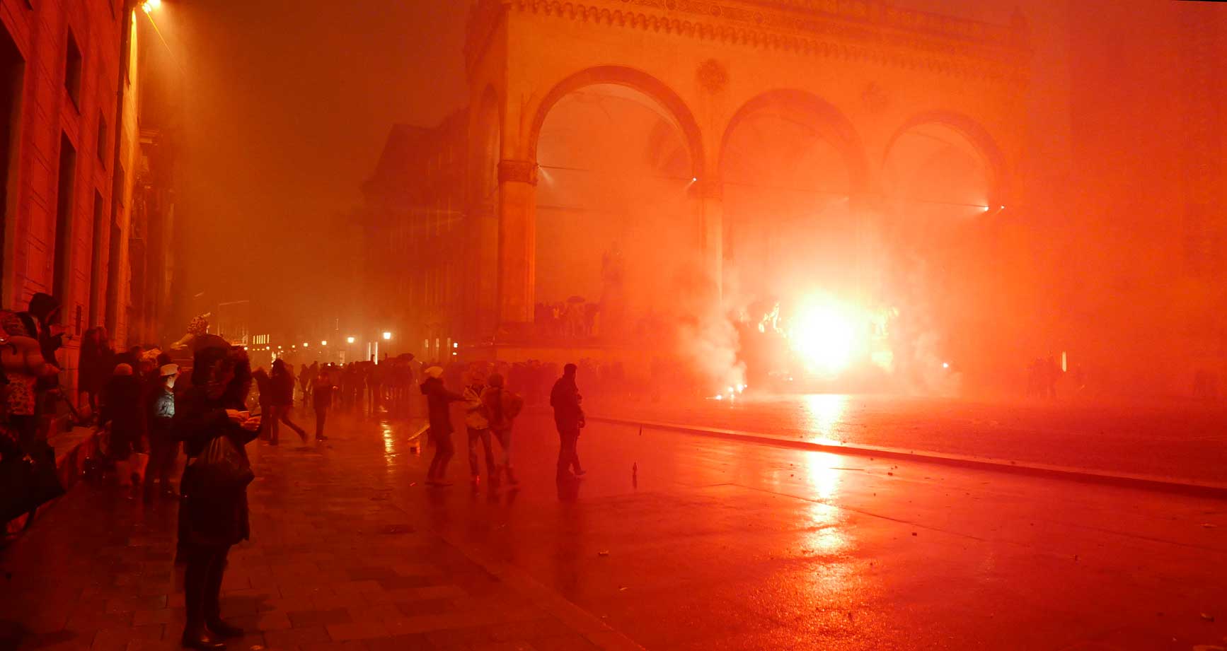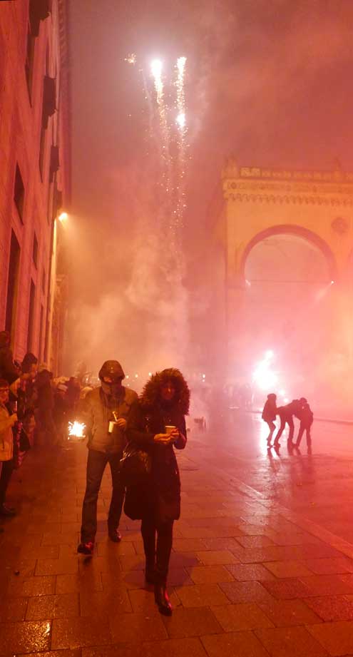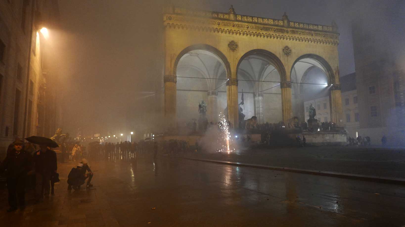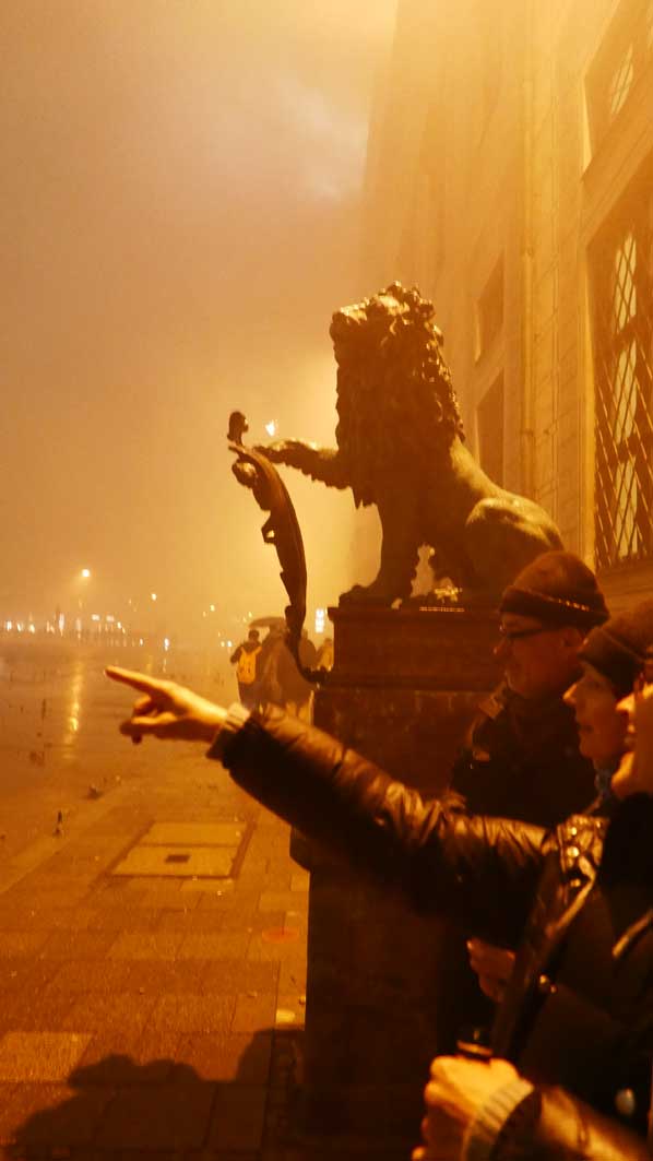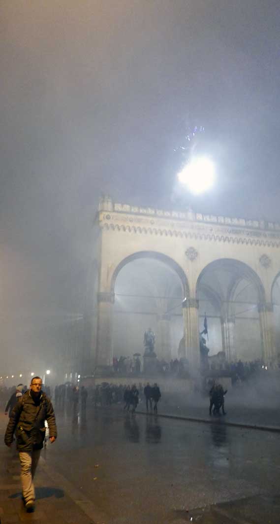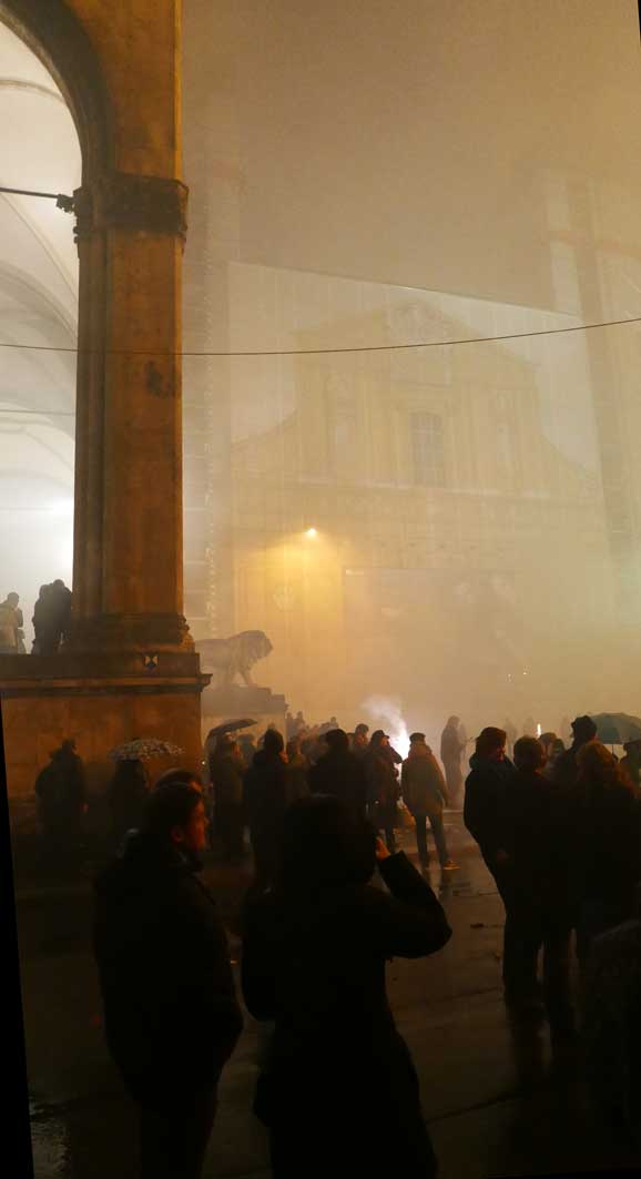 es ist der Platz wo Hitlers Mein Kampf geboren wurde. Man kennt das Bild am Beginn des 1. Weltkrieges mit H. in der Mitte der Menge, Und hierher führte der Weg als sie ihn verhaften wollten danach, bis in die Flucht, um ihn nach Landsberg zu bringen, wo er ihn schrieb. Und hier vorbei führten die Umzüge jedes Jahre später an der Macht zum Gedenken jedes Jahr mit Trommeln und Fackeln der toten Namen. Sie wissen nicht warum gerde hierher und von allen Seiten der Welt, selbst im Nebel der diesigen Nässe, un beirrt von den Meldungen des Tages. Sie kommen und was sie da hier gerde tun.