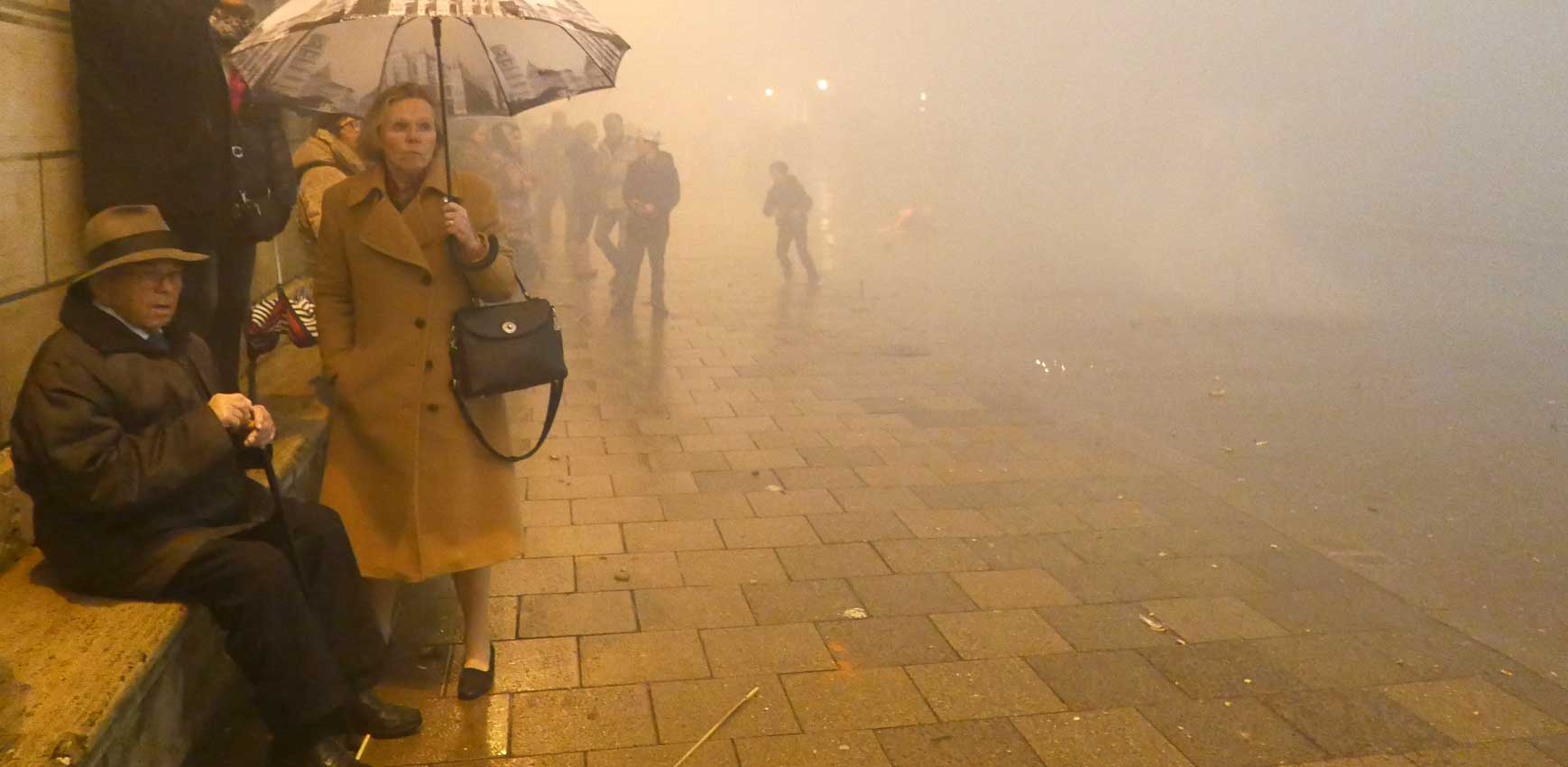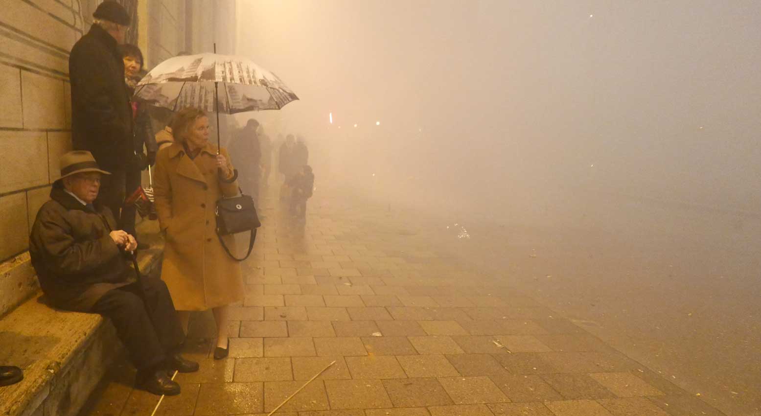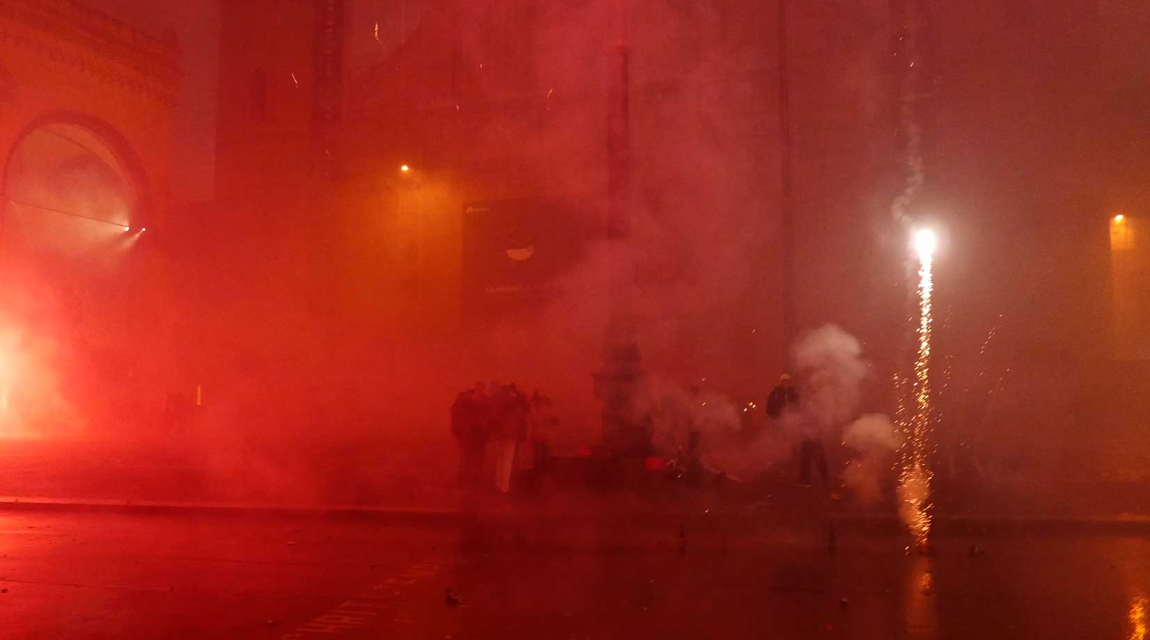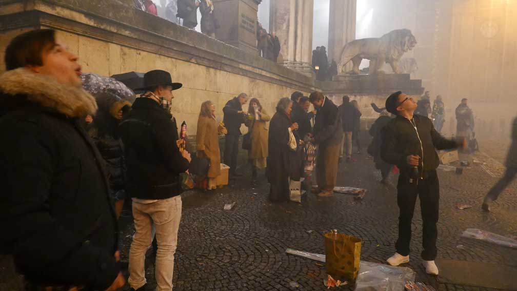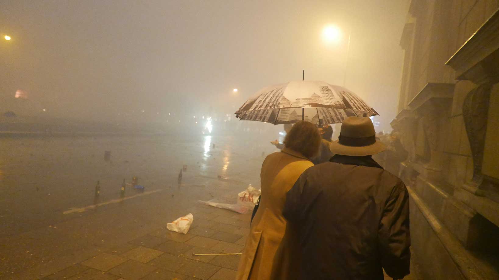 es ist der Platz wo Hitlers Mein Kampf geboren wurde. Man kennt das Bild am Beginn des 1. Weltkrieges mit H. in der Mitte der Menge, Und hierher führte der Weg als sie ihn verhaften wollten danach, bis in die Flucht, um ihn nach Landsberg zu bringen, wo er ihn schrieb. Und hier vorbei führten die Umzüge jedes Jahre später an der Macht zum Gedenken jedes Jahr mit Trommeln und Fackeln der toten Namen. Sie wissen nicht warum gerde hierher und von allen Seiten der Welt, selbst im Nebel der diesigen Nässe, un beirrt von den Meldungen des Tages. Sie kommen und was sie da hier gerde tun.