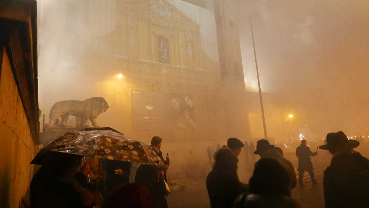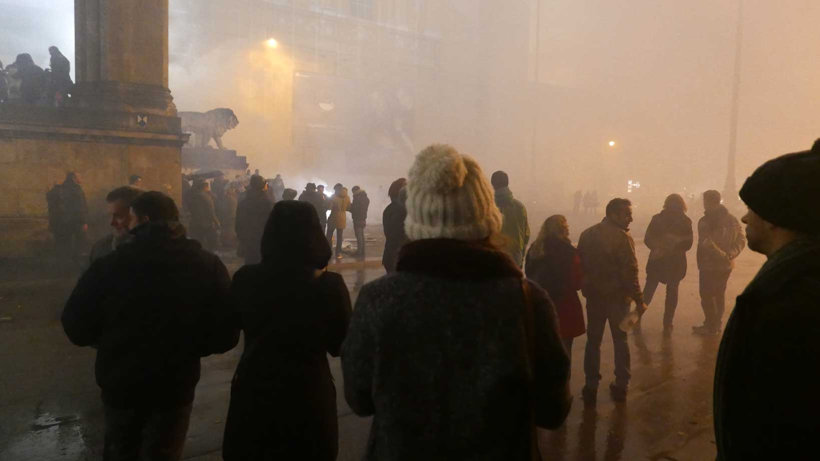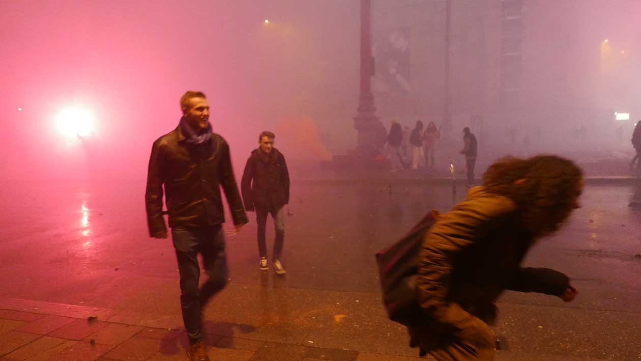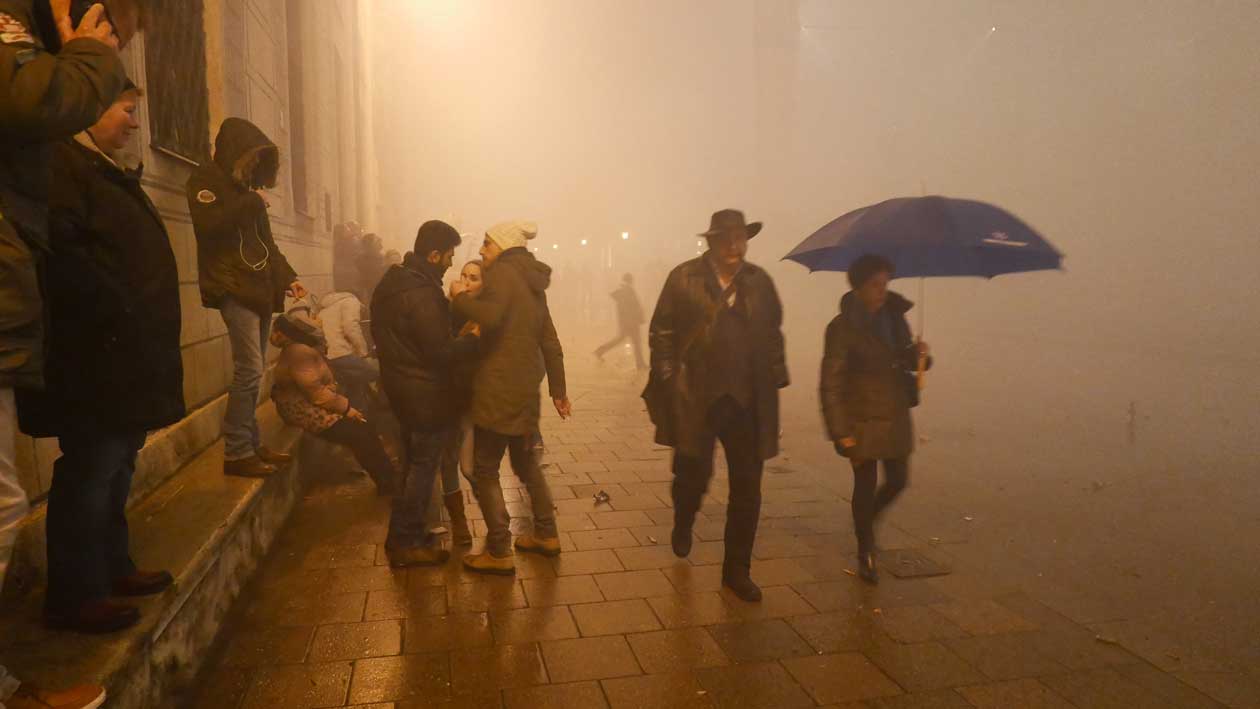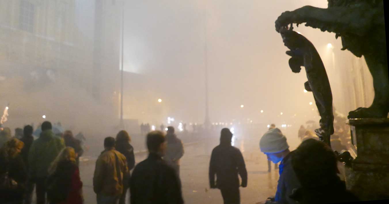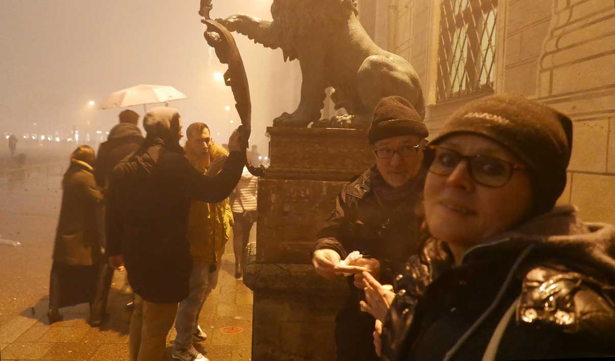 es ist der Platz wo Hitlers Mein Kampf geboren wurde. Man kennt das Bild am Beginn des 1. Weltkrieges mit H. in der Mitte der Menge, Und hierher führte der Weg als sie ihn verhaften wollten danach, bis in die Flucht, um ihn nach Landsberg zu bringen, wo er ihn schrieb. Und hier vorbei führten die Umzüge jedes Jahre später an der Macht zum Gedenken jedes Jahr mit Trommeln und Fackeln der toten Namen. Sie wissen nicht warum gerde hierher und von allen Seiten der Welt, selbst im Nebel der diesigen Nässe, un beirrt von den Meldungen des Tages. Sie kommen und was sie da hier gerde tun.
