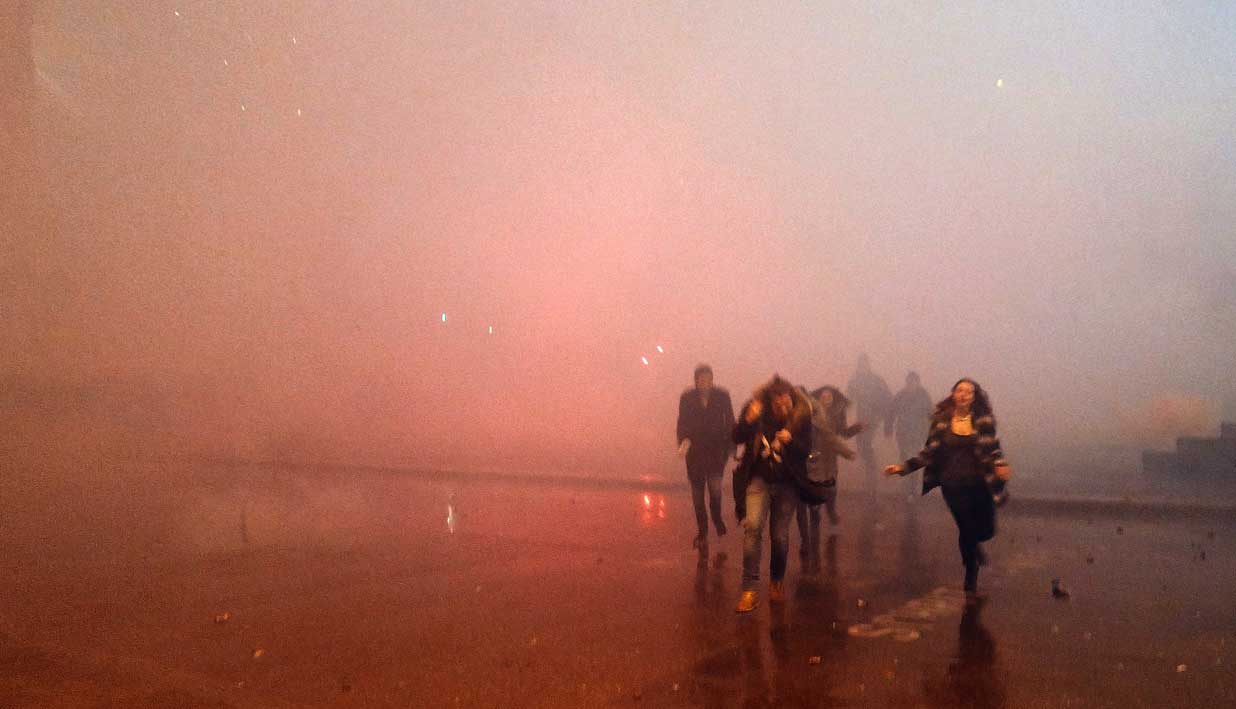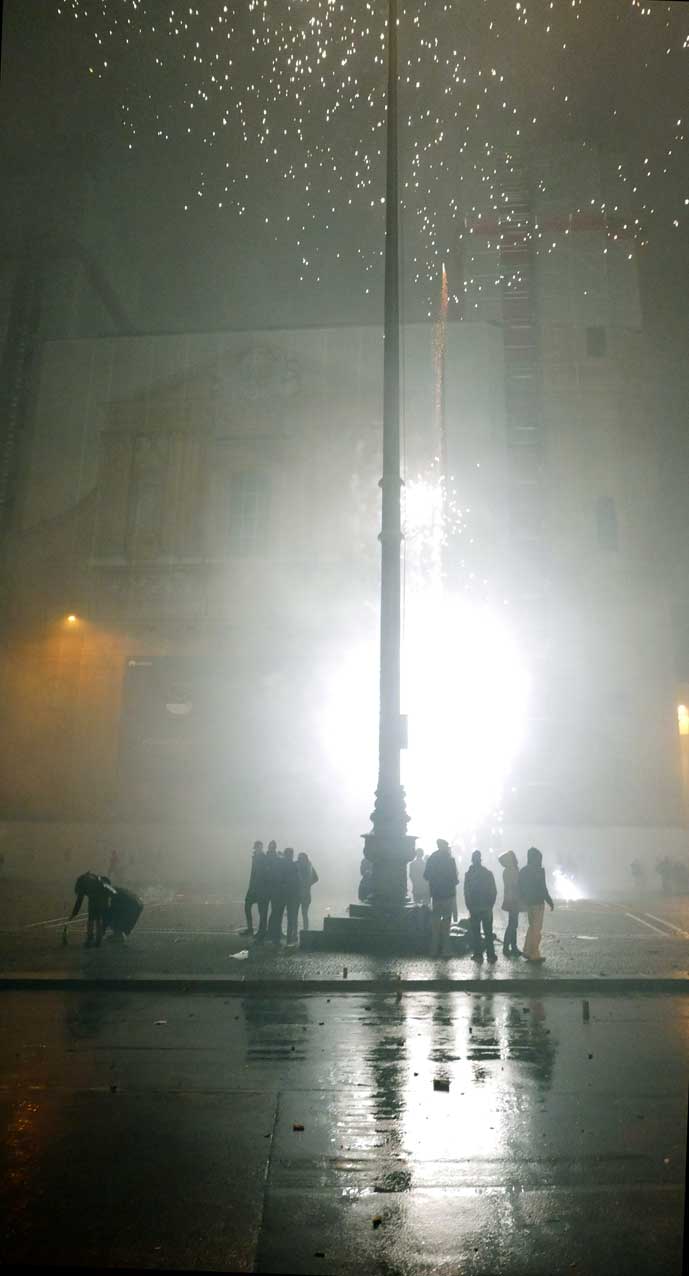 das Ganze hat auch etwas mir einer Teufelsaustreibung zu tun mit gleichen Mitteln. Man ängstigt sich, beschwört das Unheimliche, wagt die Gefahr und will sie bannen, durch eigenes Tun ins Gute, eine Wewndung ins Schöne des Lichts? hier der Farben und der Formen im Lachen. Dem Inferno ganz nahe.