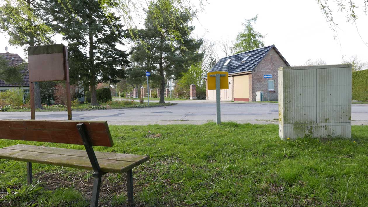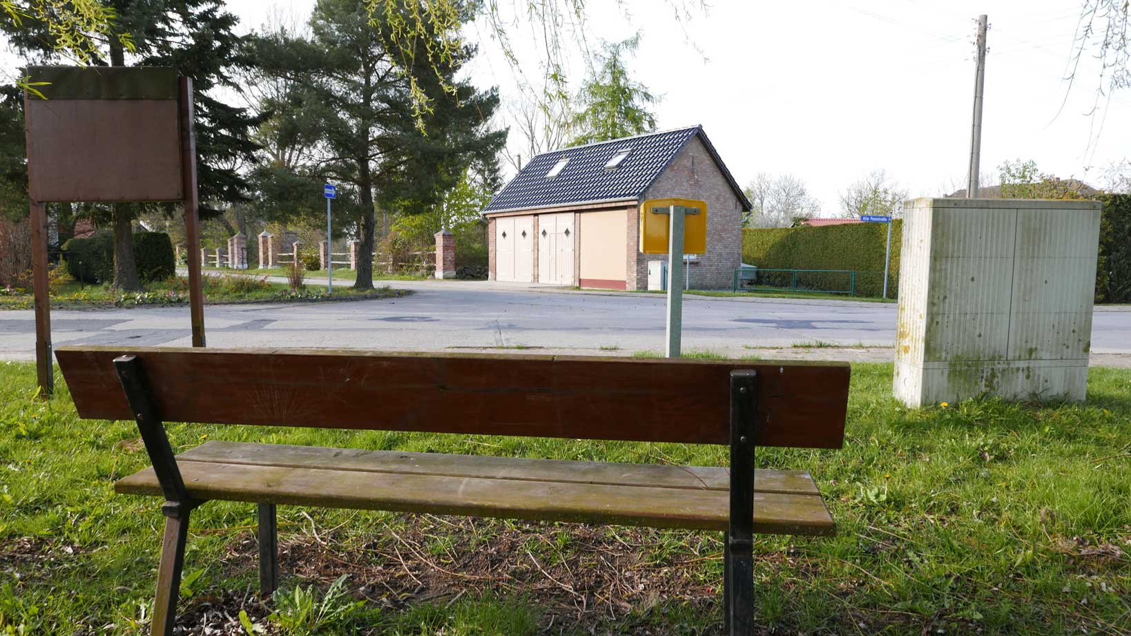 ja was sieht sie denn leer auf die Rückseiten von Anschlagtafel der Gemeinde, Briefkasten in die Ferne und GKU Kasten im Schmuddel-look