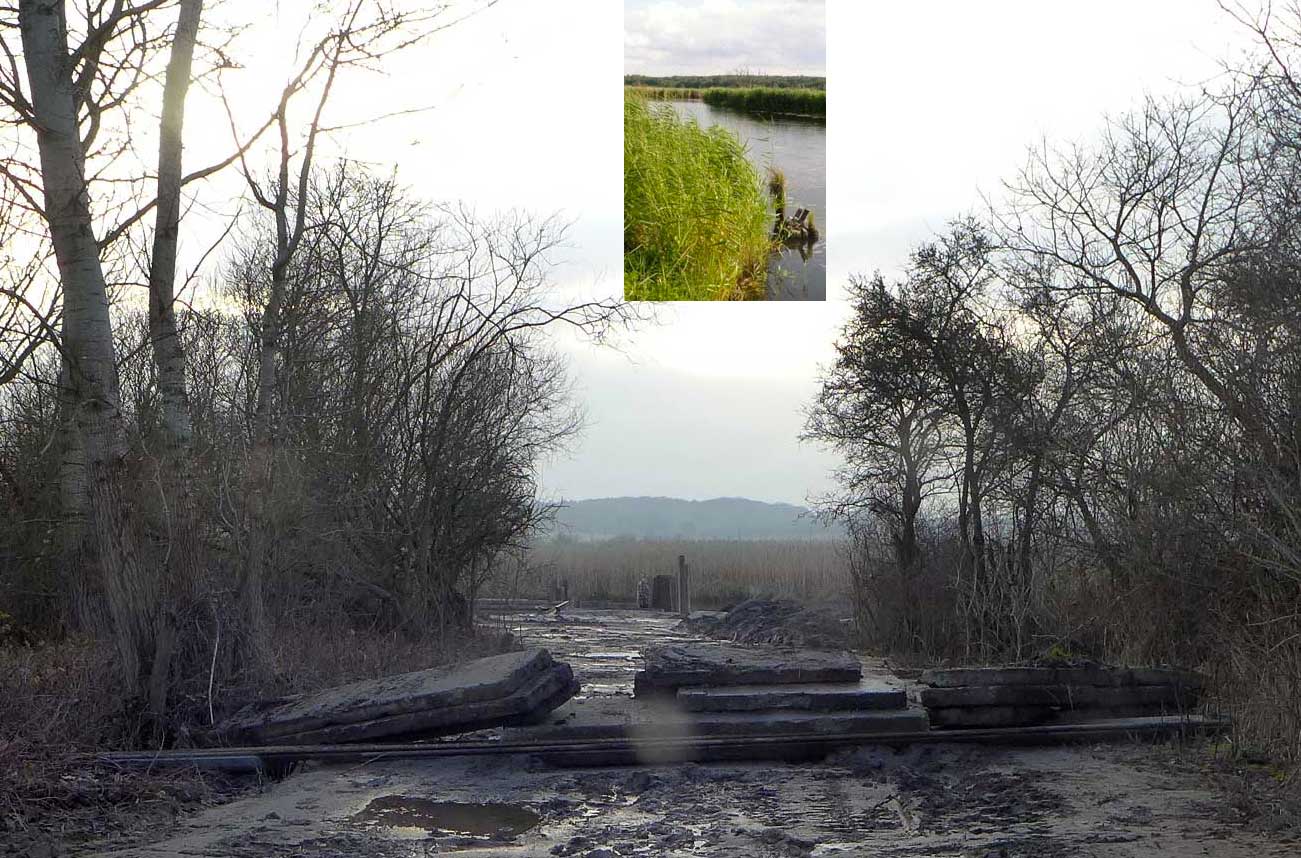 Was dann an der Trebel geschah als Ausverkauf und Geschäft mit der Natur des Fluss vom Amt für Umwelt selbst ist Symptom der Zeit auf gespenstische Weise. Eine Installatiuon aus Verträgen und Lügen hinter vorgahltenen Händen. Dieser Oedt war einmal der Sommerspielplatz der Kinder des Dorfs und liegt heute in einem Umwelt-Schutzgebiet.