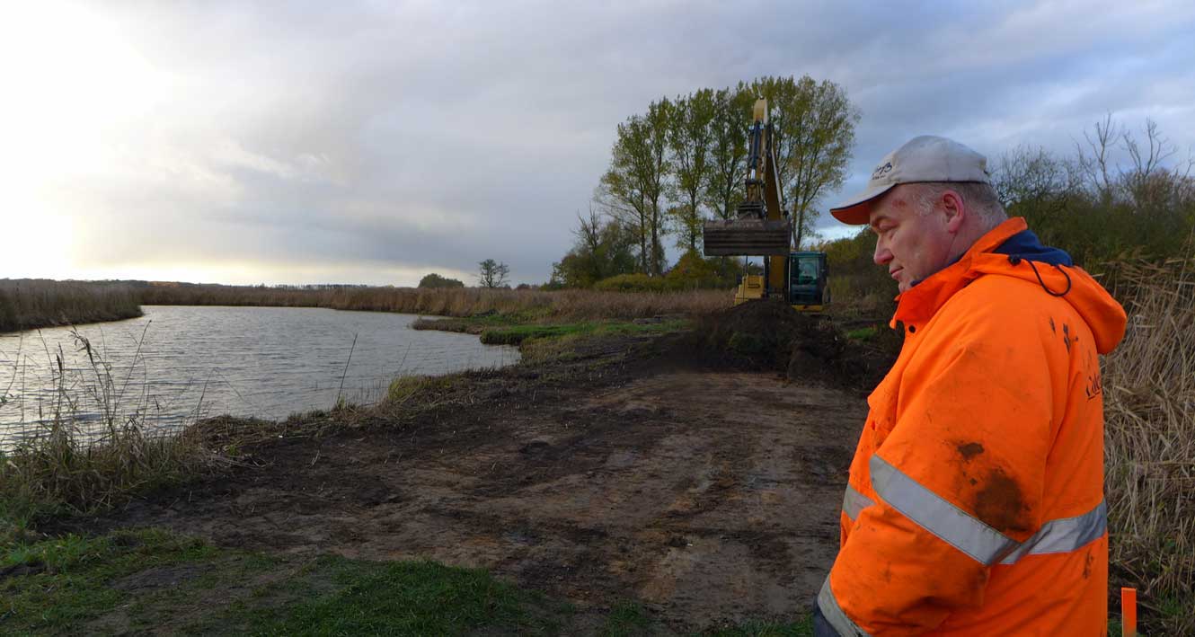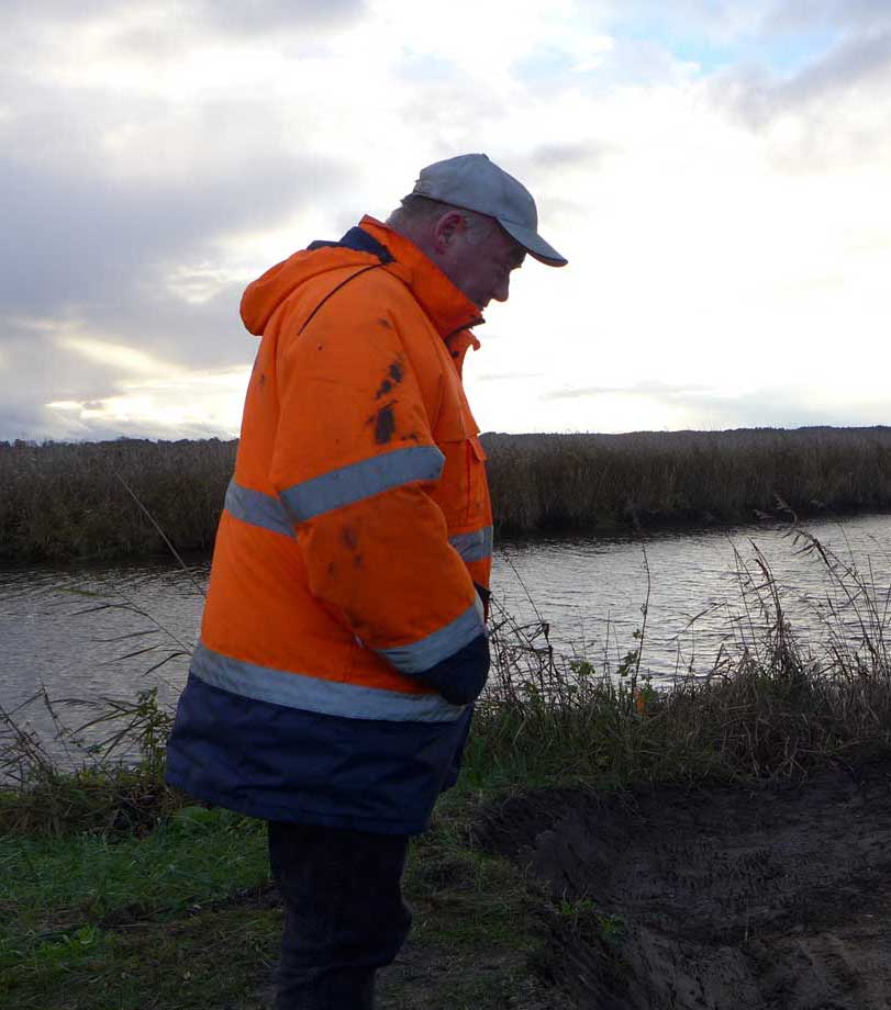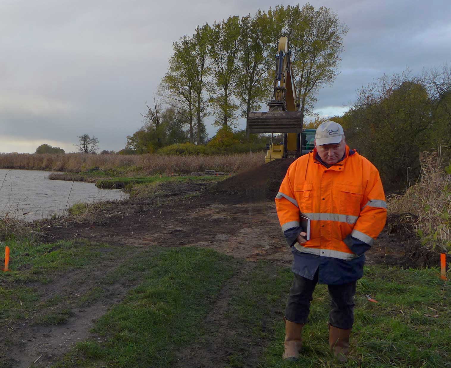 Diese 8 Meter-langen stahlsundplatten widersetzten sich als sie in den weichenUntergrund des Trebelufers