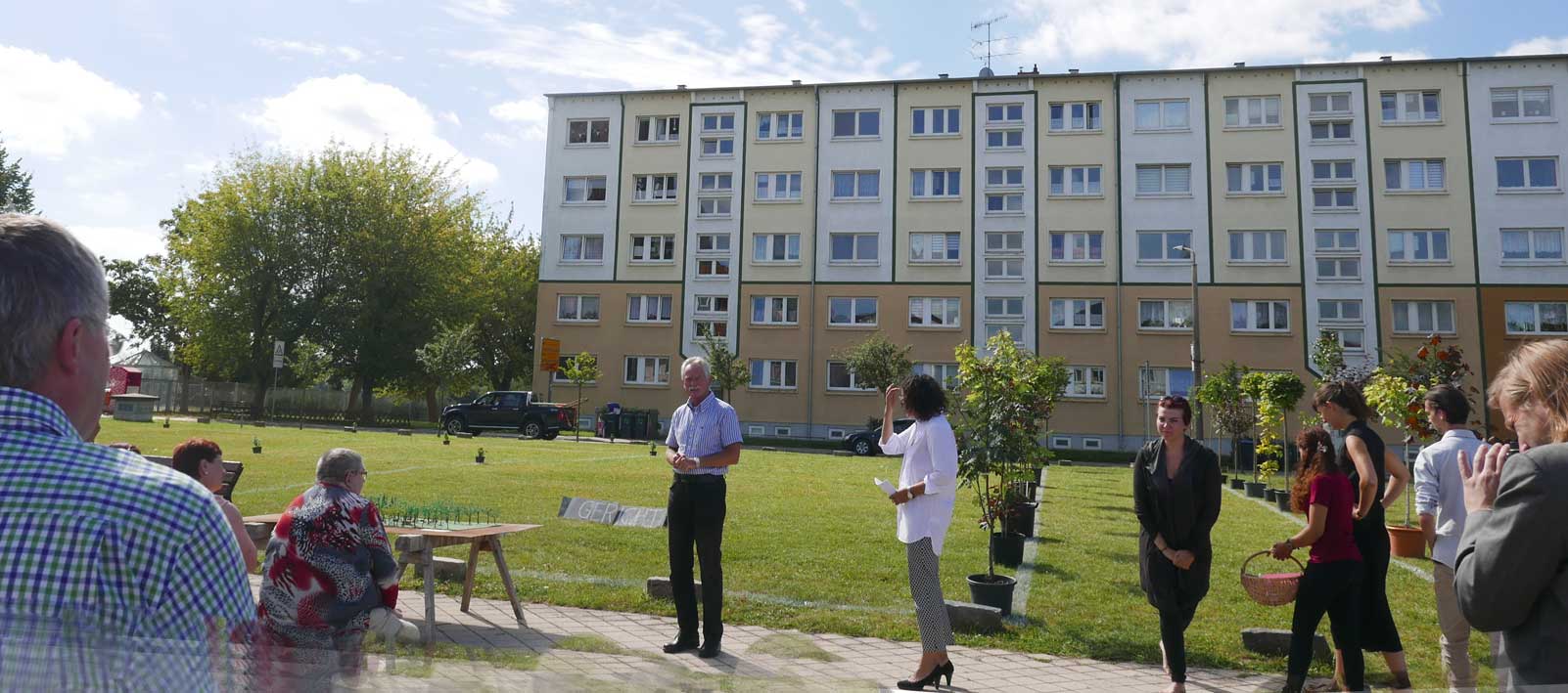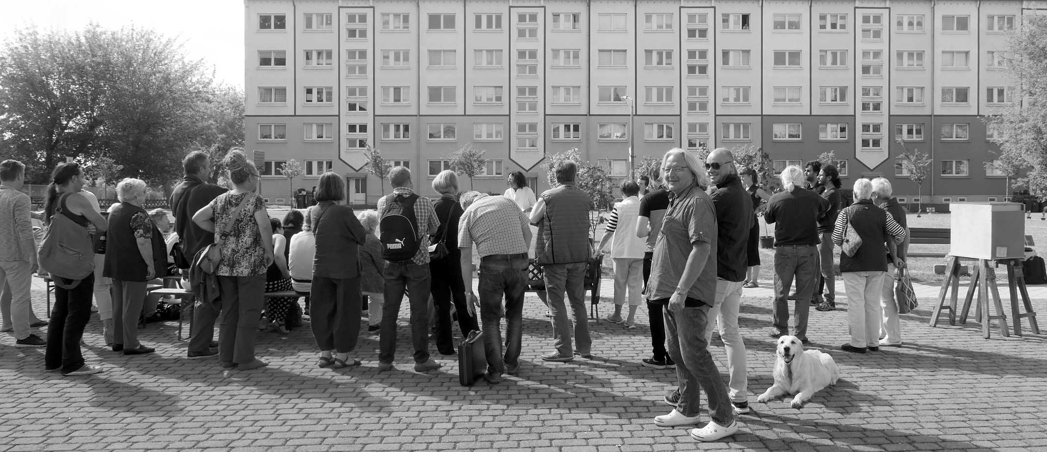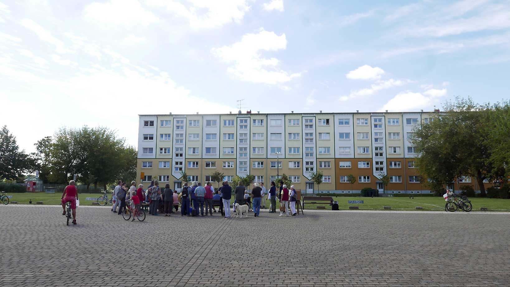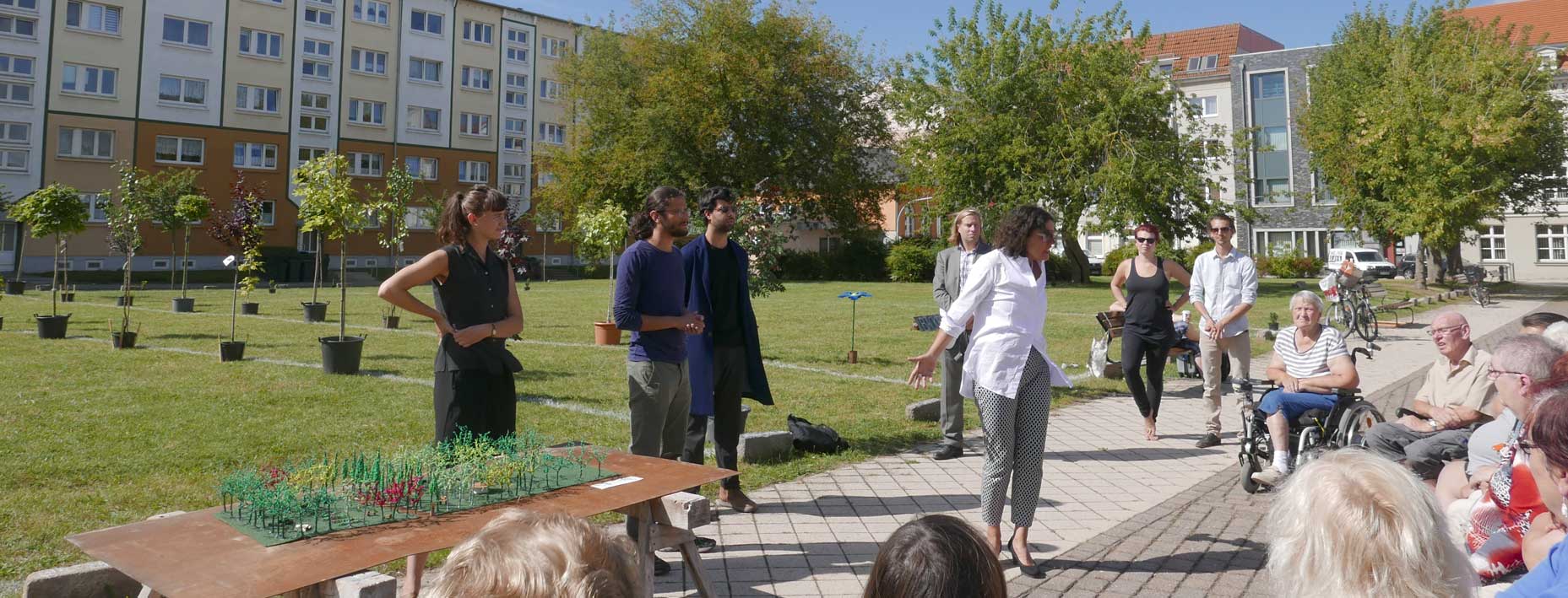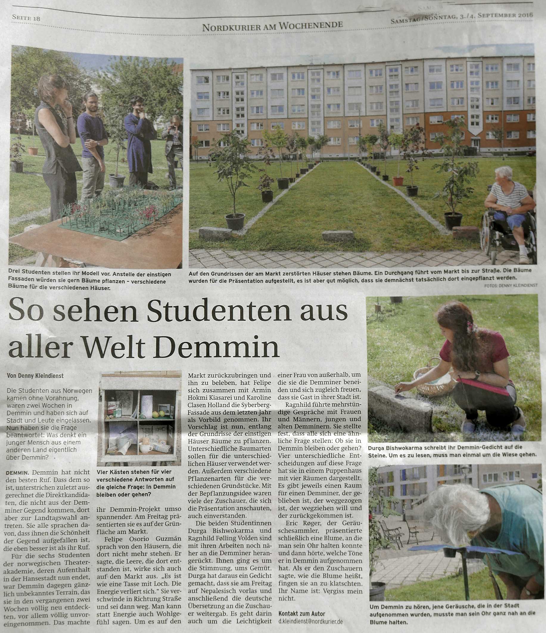 Demmin und die Präsentation der Studenten von der norwegischen Theaterakademie, was sie in zwei Wochen dort gesammelt, um es vorzustellen und darauf zu reagieren.