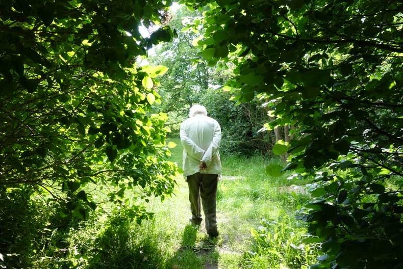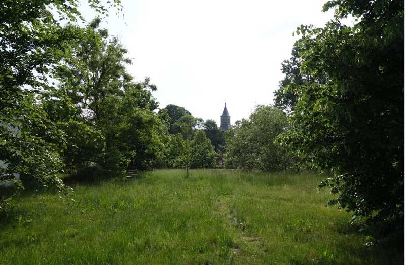 verbannt zu den Meditationen auf der Betonstrasse zur Kirche und denGräbern........