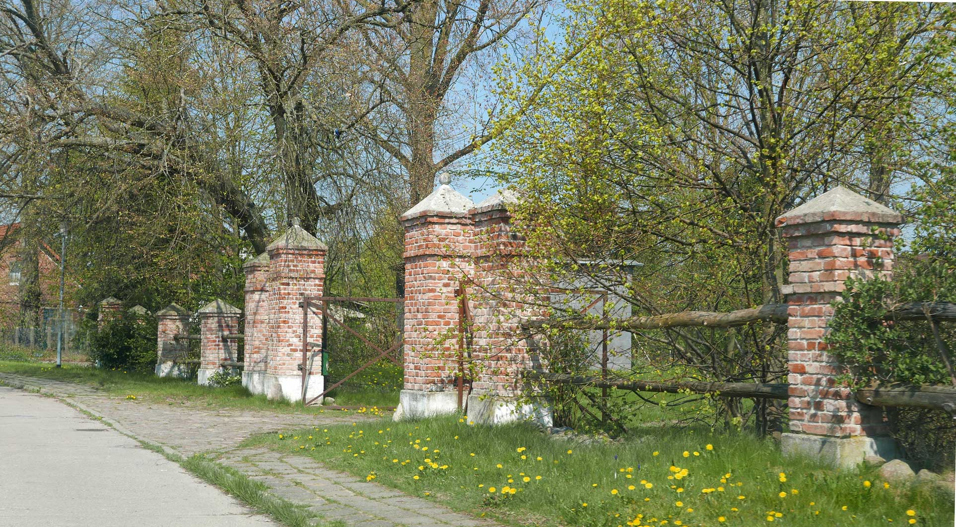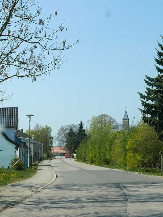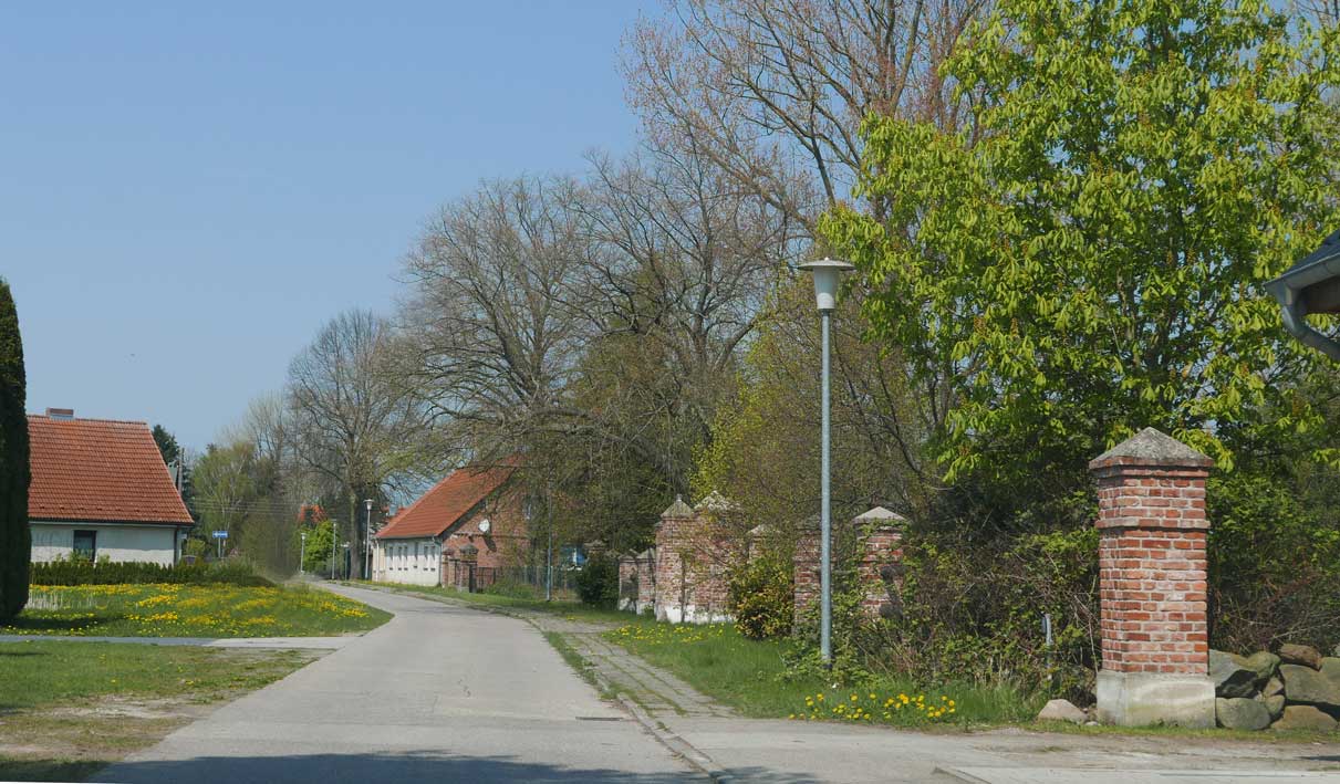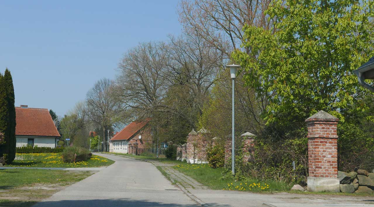 die Einfahrt mit einigen Ausblendungen links und rechtsvon Nossendorf