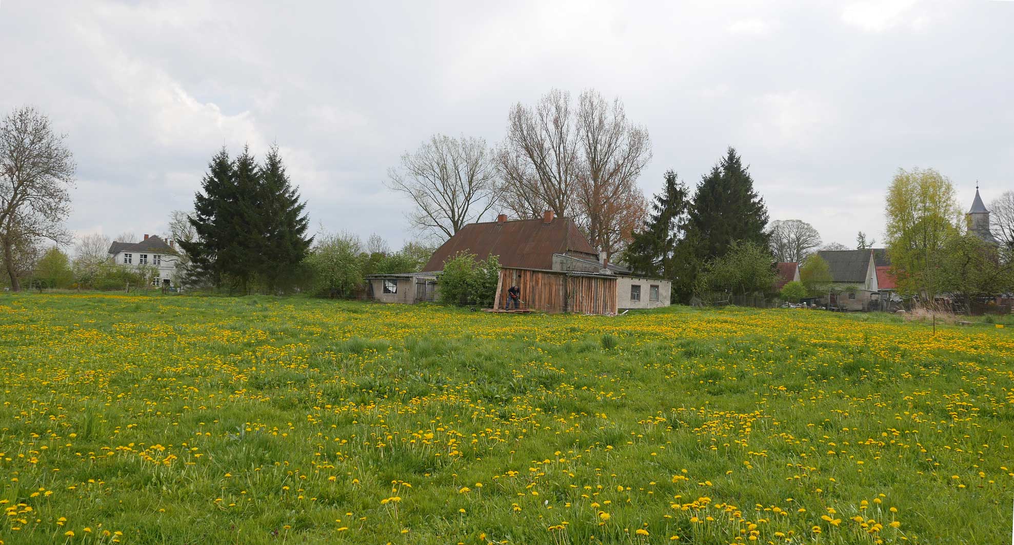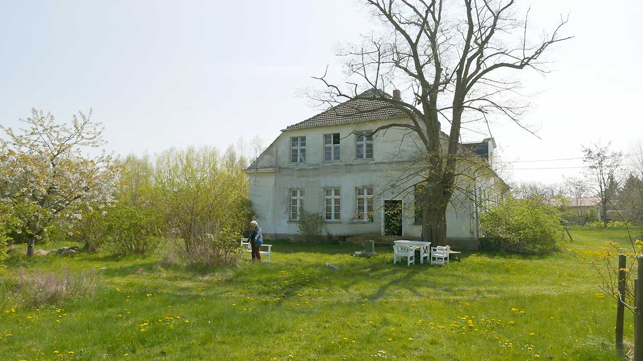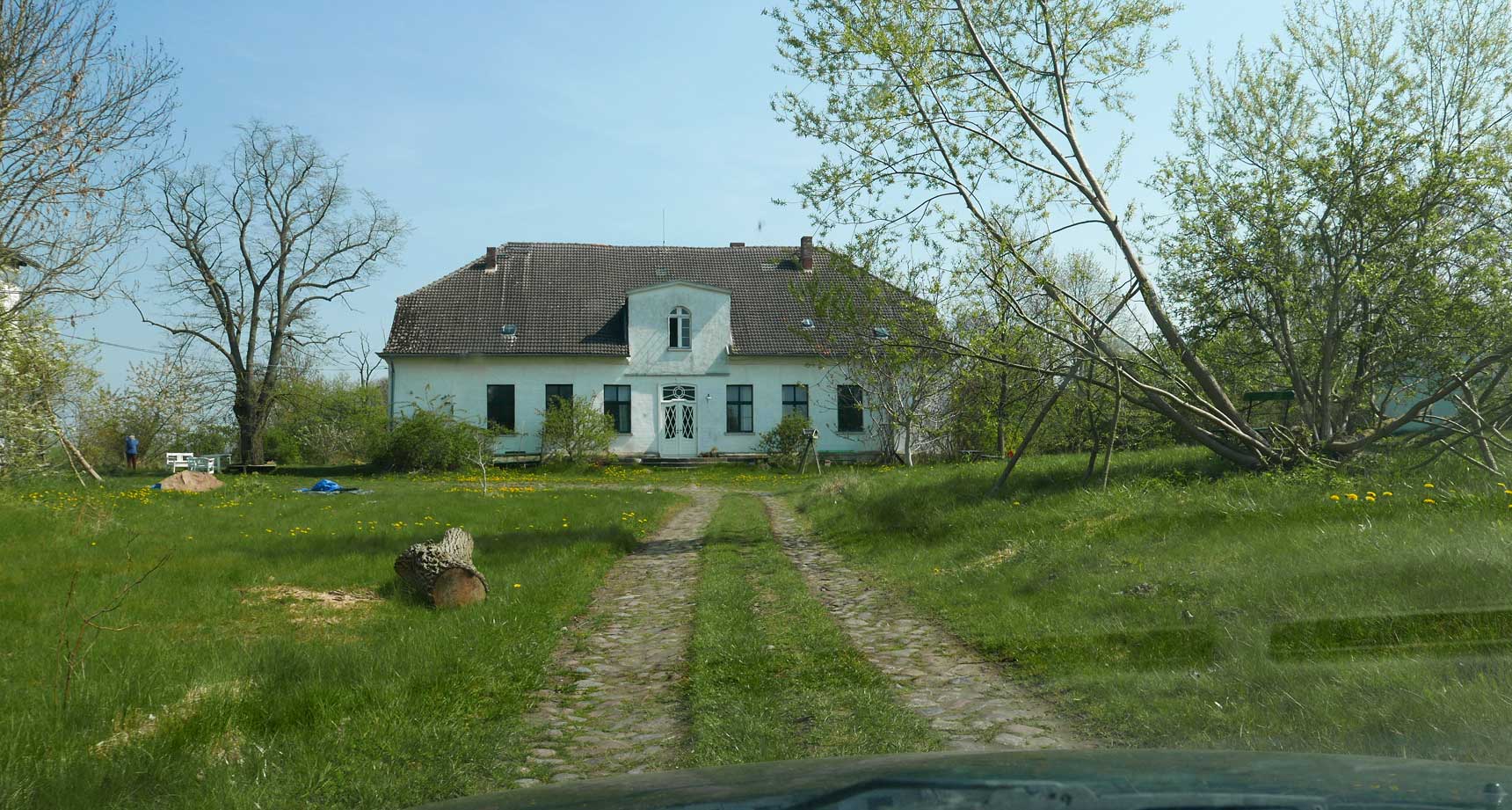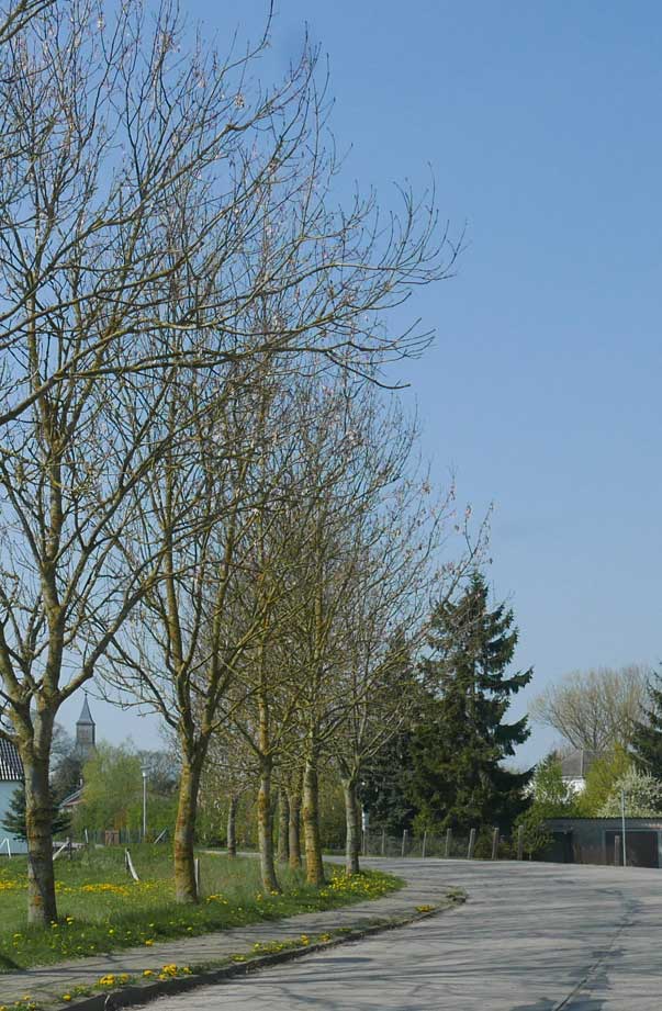 die Einfahrt mit einigen Ausblendungen links und rechtsvon Nossendorf