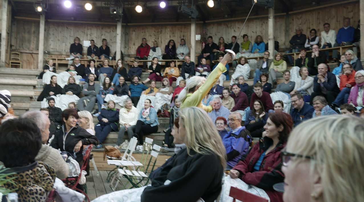 wie hier Theater entstand aus der Idee zweier Freunde aus einem Ballhaus und einer Strandbar an der Spree, zum offenen Haus aus Holz und gegen alle Widerstände, eine Gruppe entstand für nun schon Jahre immer im Sommer wieder aufgebaut, dass da Menschen kommen, und alles ohne öffentliche Gelder immer mit viel Witz, so dass das Pubklikum wiederkommt und weiss hier wir niemand betrogen. Wenn sie lachen und nachdenken auch warum. Am Platz des alten Schlosses Monbijou, das hier bis Ulbricht -noch als Ruine aufbaufähig mit seinem Theater - stand. Zu unserem Gedächtnis aller.
