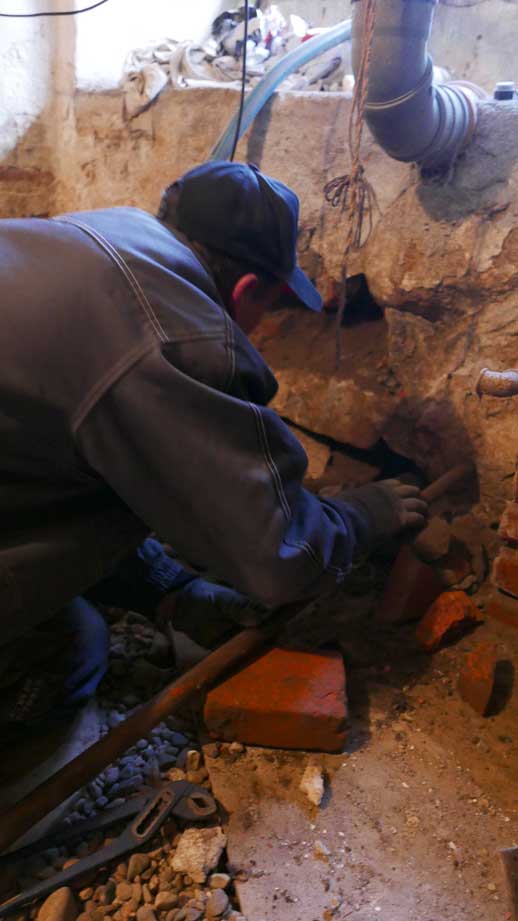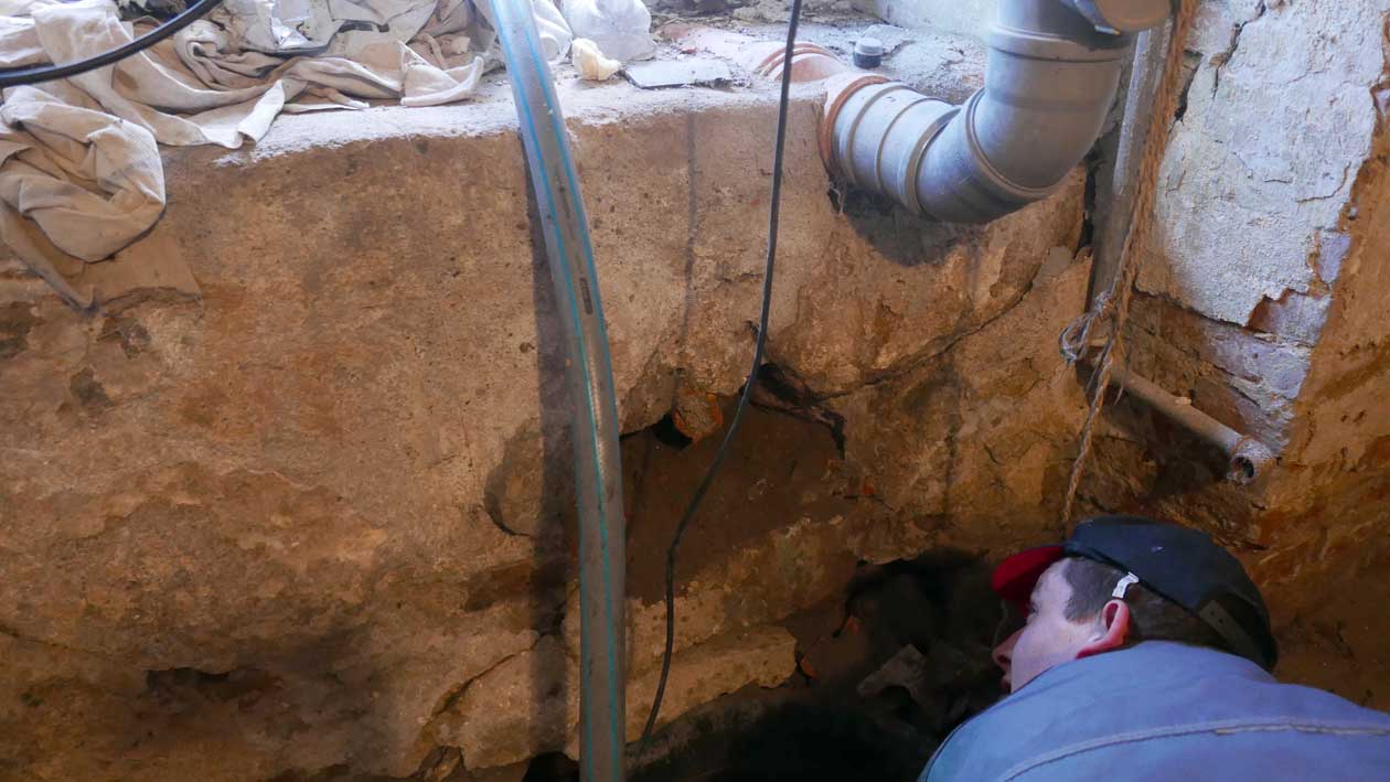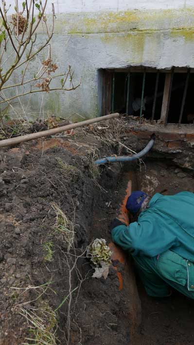das Frischwasser durch die dicken Feldsteinfundamente ins Haus zu bringen ist das Eine, die Leitung der Kloake hinaus das Andere