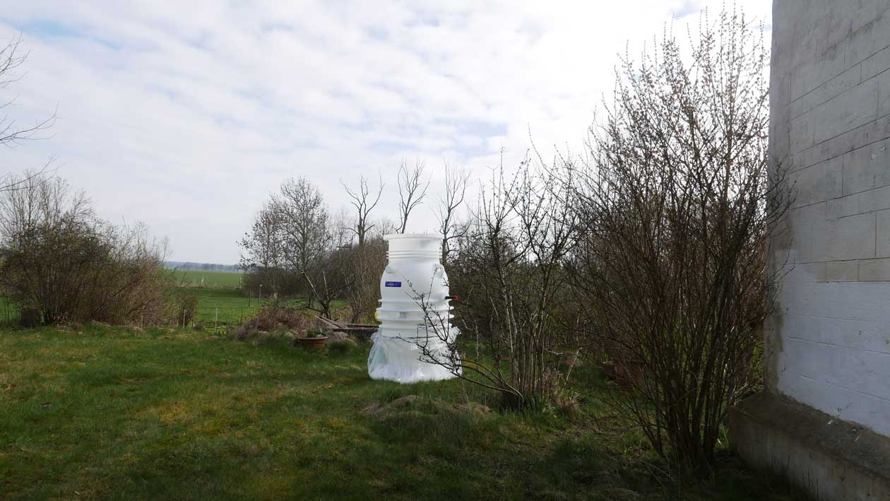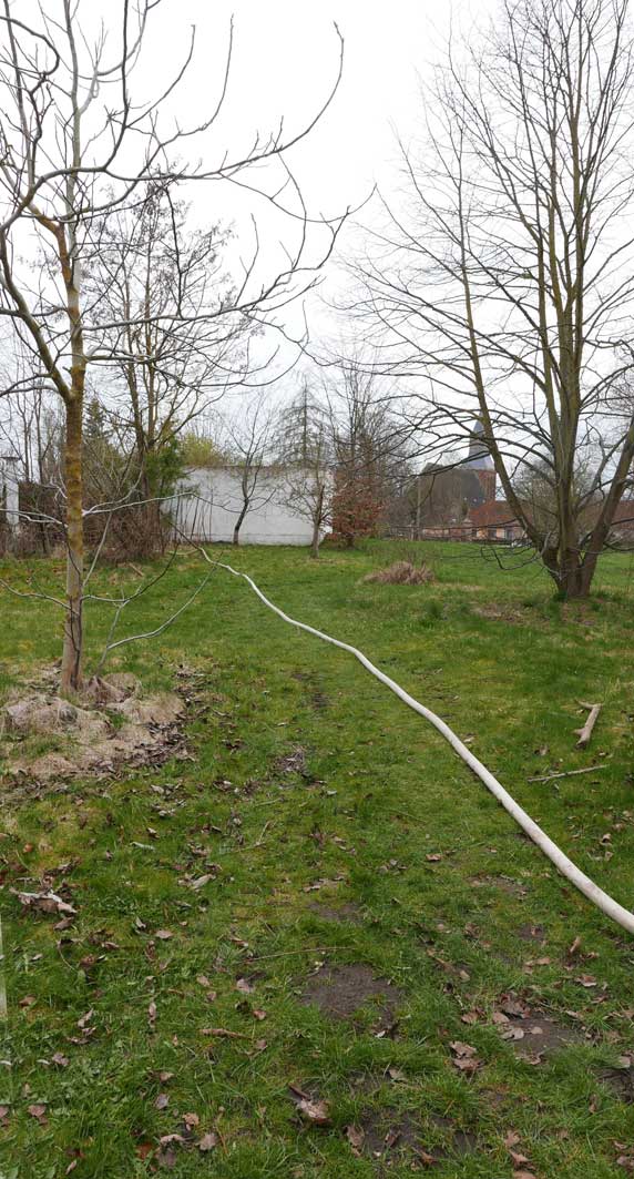 Der Anschluss an die Ringleitung des Dorfes für Abwasser Kloake und Frischwasser aus Demmin ersetzt die alten Sickergruben, von Zeit zu Zeit ausgepumpt. Der Motor, der alles betreibt wird in dieser Plastikhülle sein. Versenkt hinab.