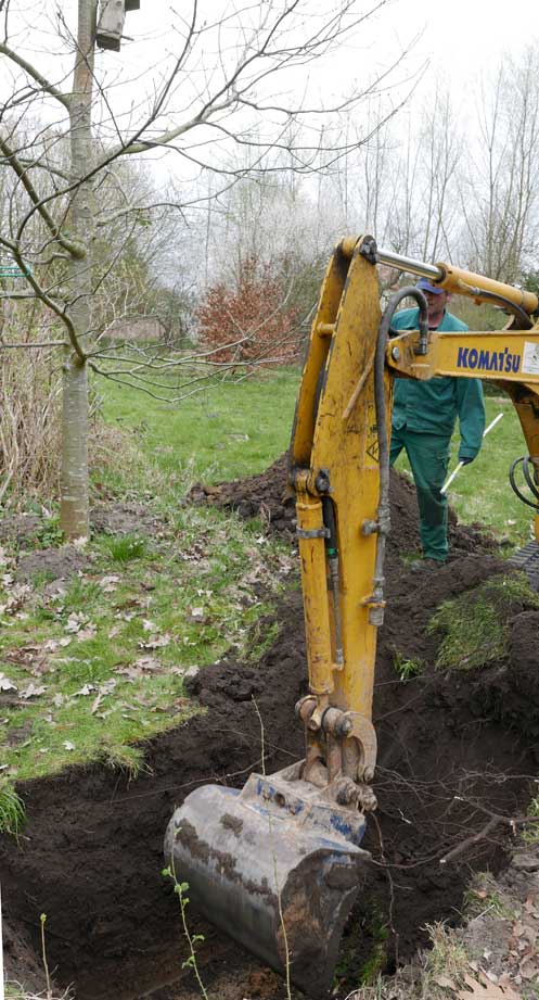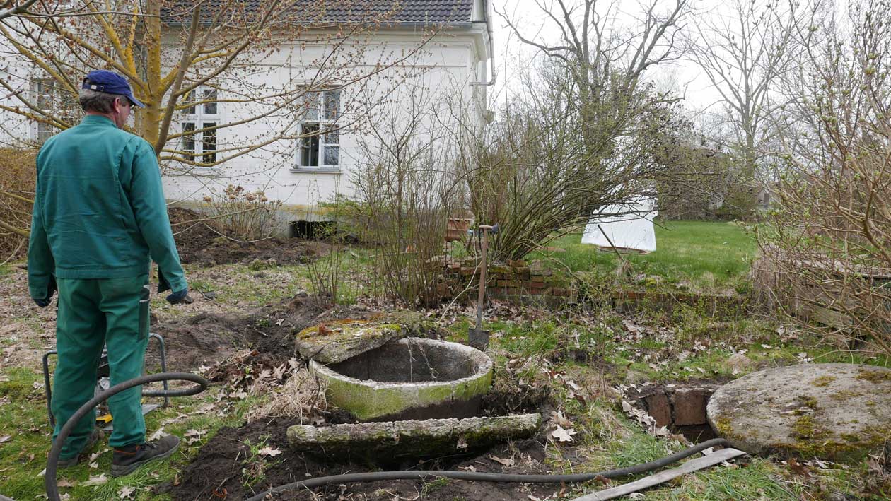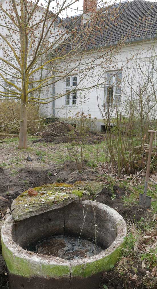 Er muss nun in die Erde, vorher die alten Gruben entleert werden und die Leitungen gelegt.