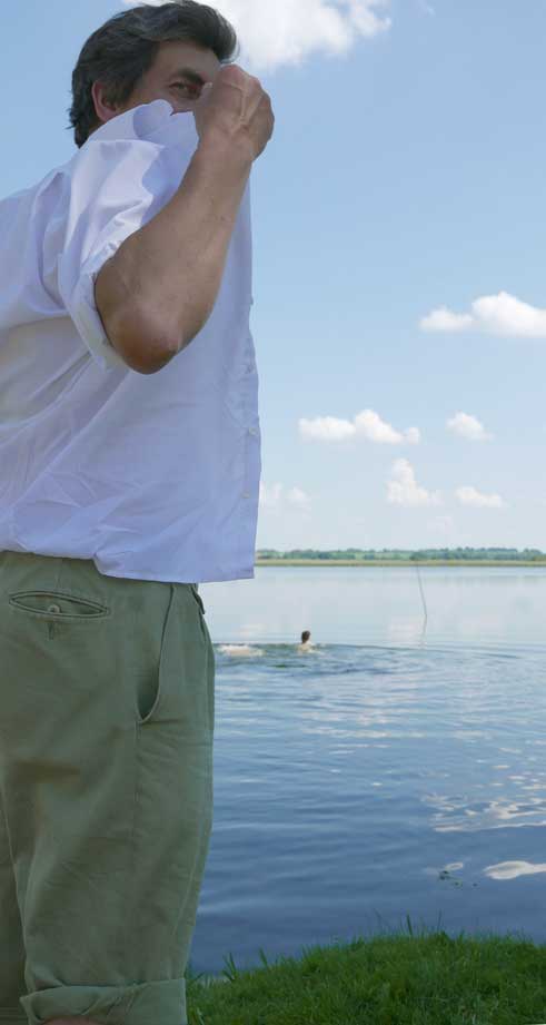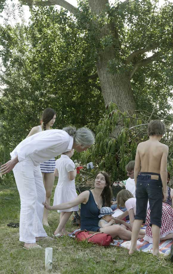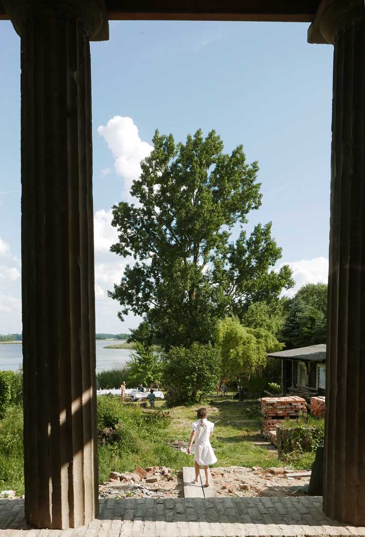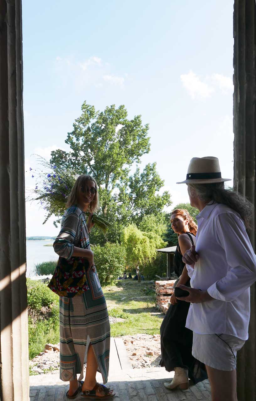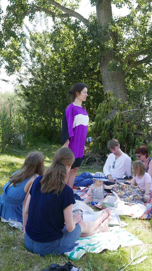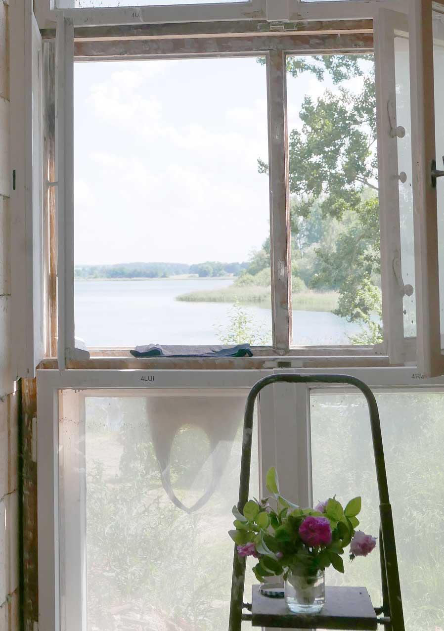 in N. das Baden an der Trebel, das Ufer nun in Gefahr. Neben 42 Meter Beton plus Stahl Ufer und Fusballfeld-grosser Wendeschleife für LKWs. Im Herbst alles Schilf weg und Sonnenblumen: "Entkrautung", dass es besser fliesst.