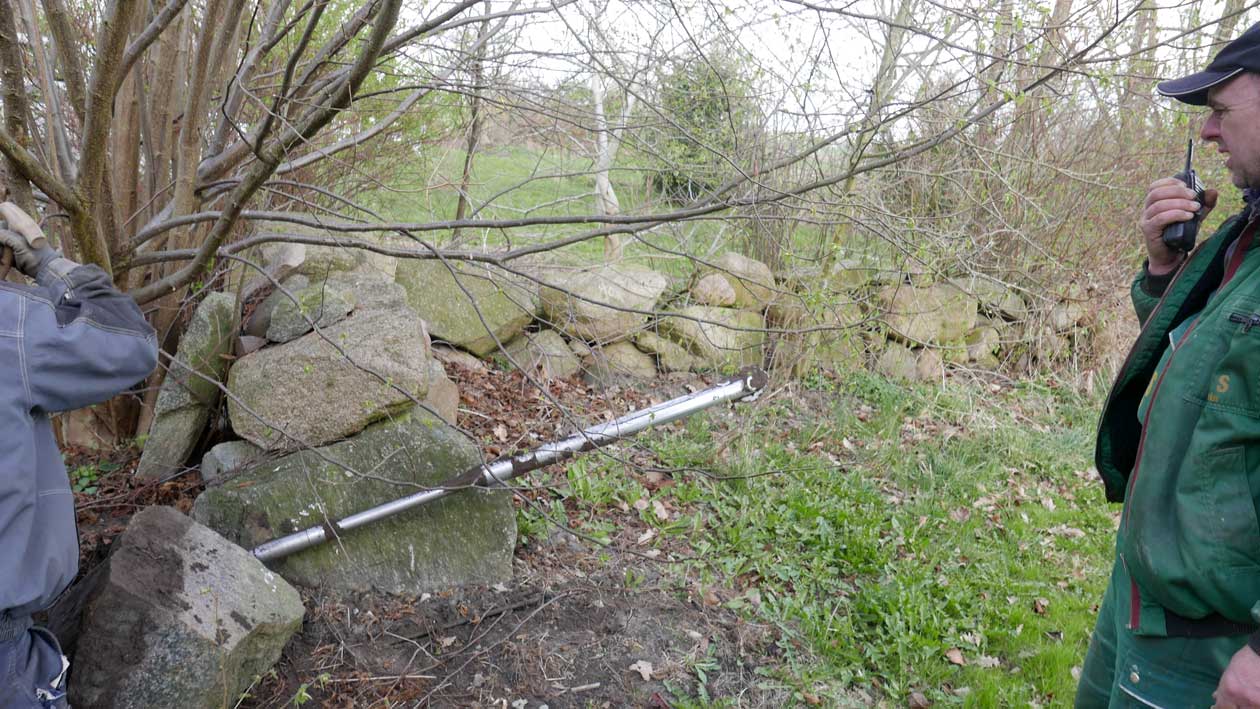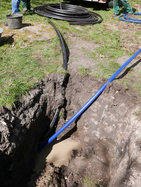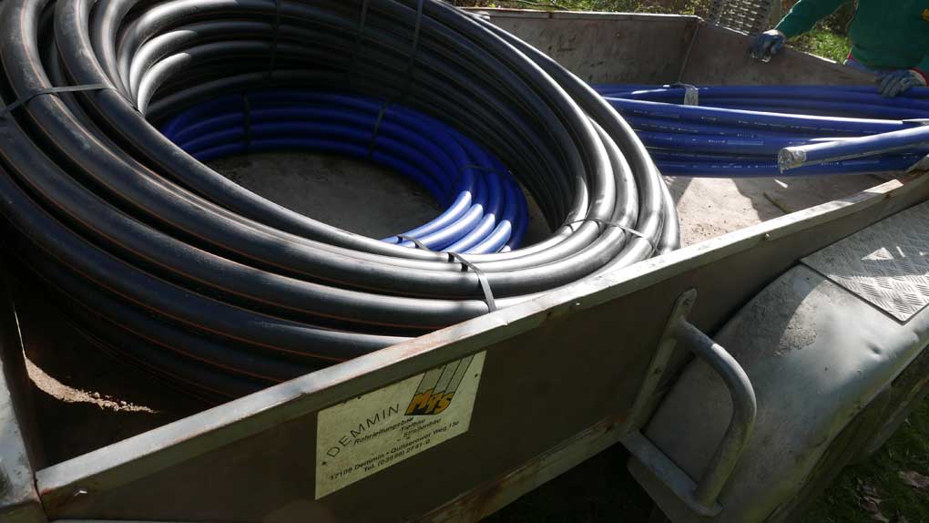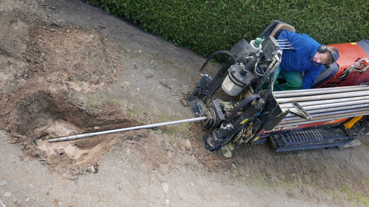 der durch Sensoren geführte Bohrer macht die Spur frei für die Schläuche dannvon Abwasser weg und Frischwasser hin