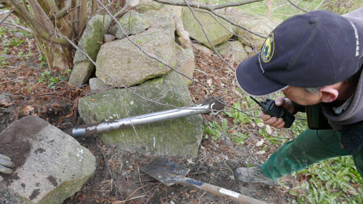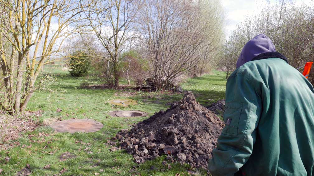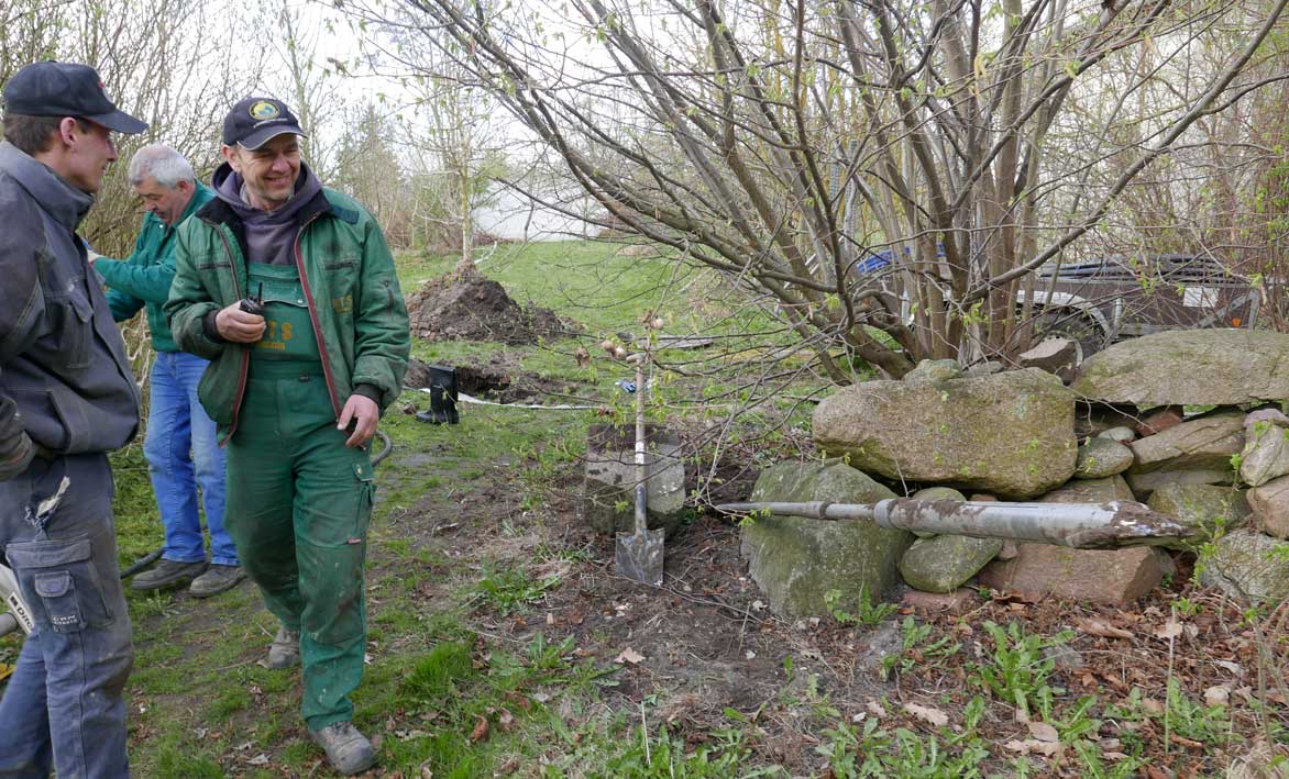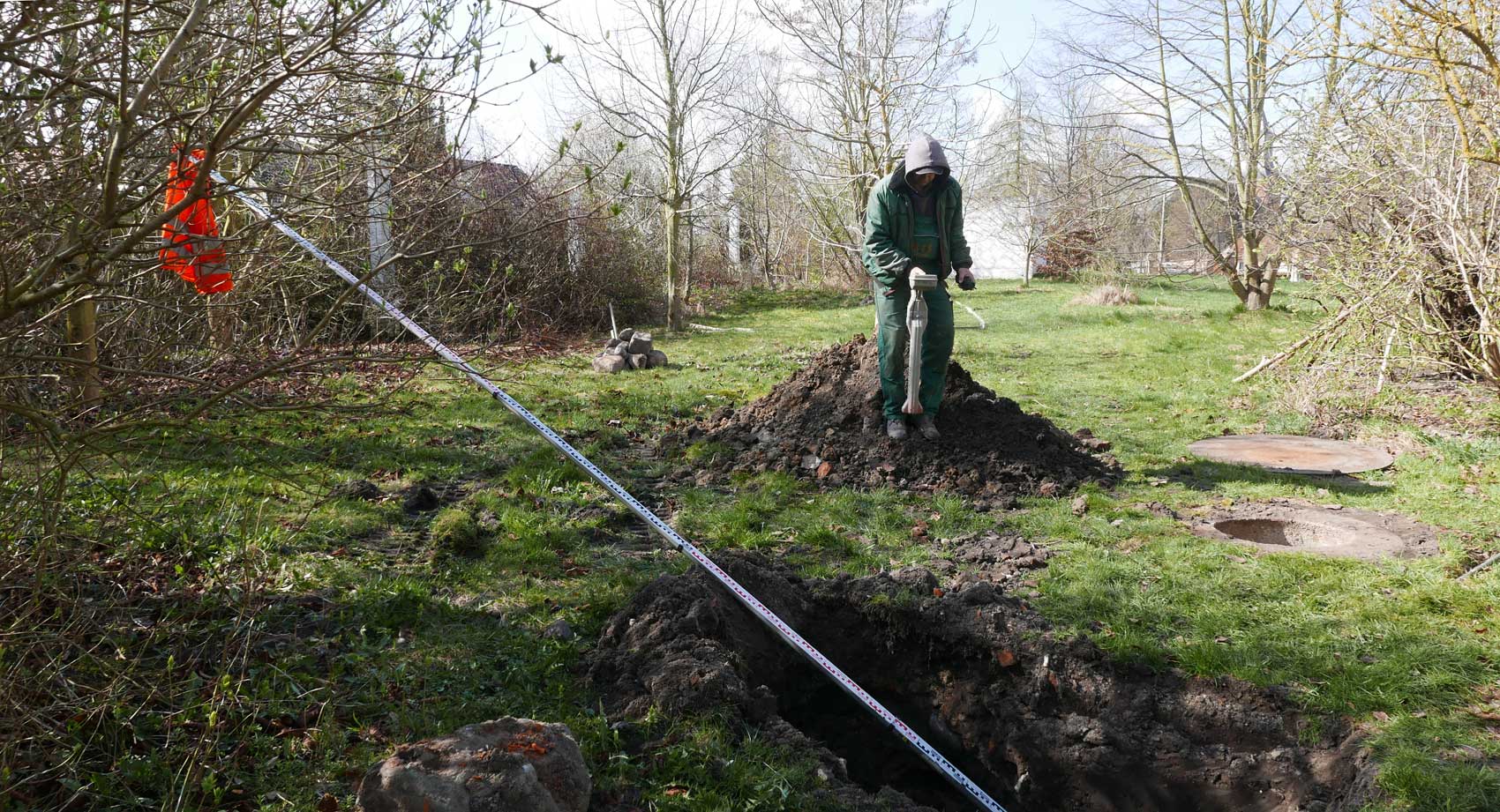 der durch Sensoren geführte Bohrer macht die Spur frei für die Schläuche dannvon Abwasser weg und Frischwasser hin