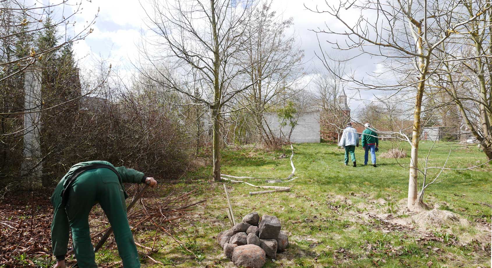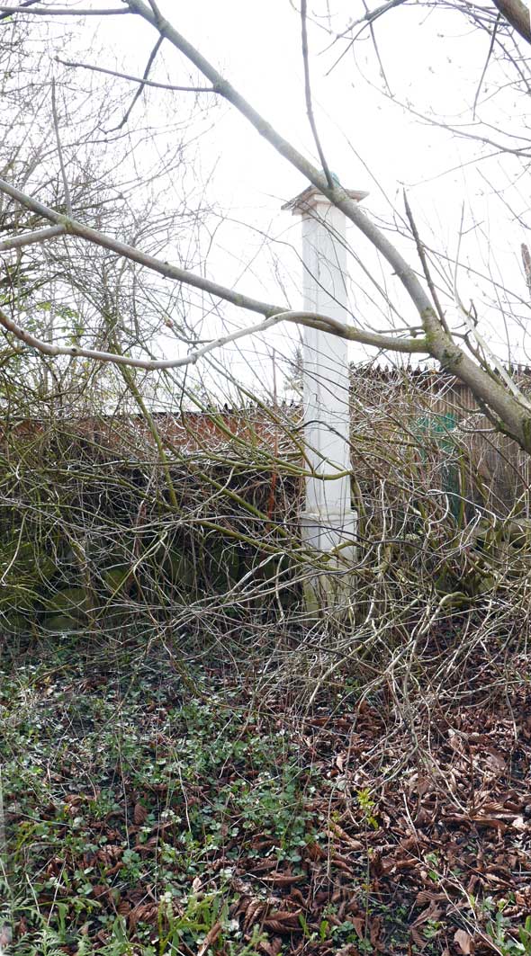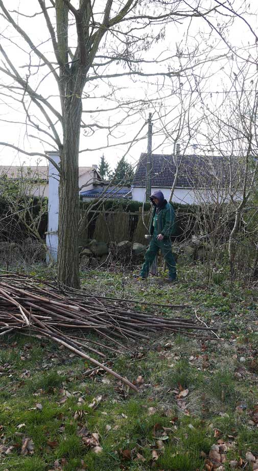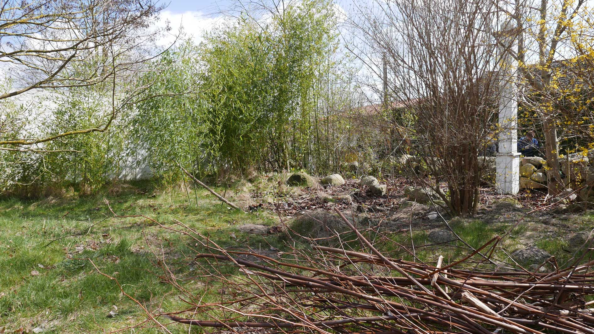 dort rechts der Steine verlief der alte Weg aufs Feld, links die Stellmacherei und Garagen bis hinauf zum Kuhstall, dem ehemaligen.
