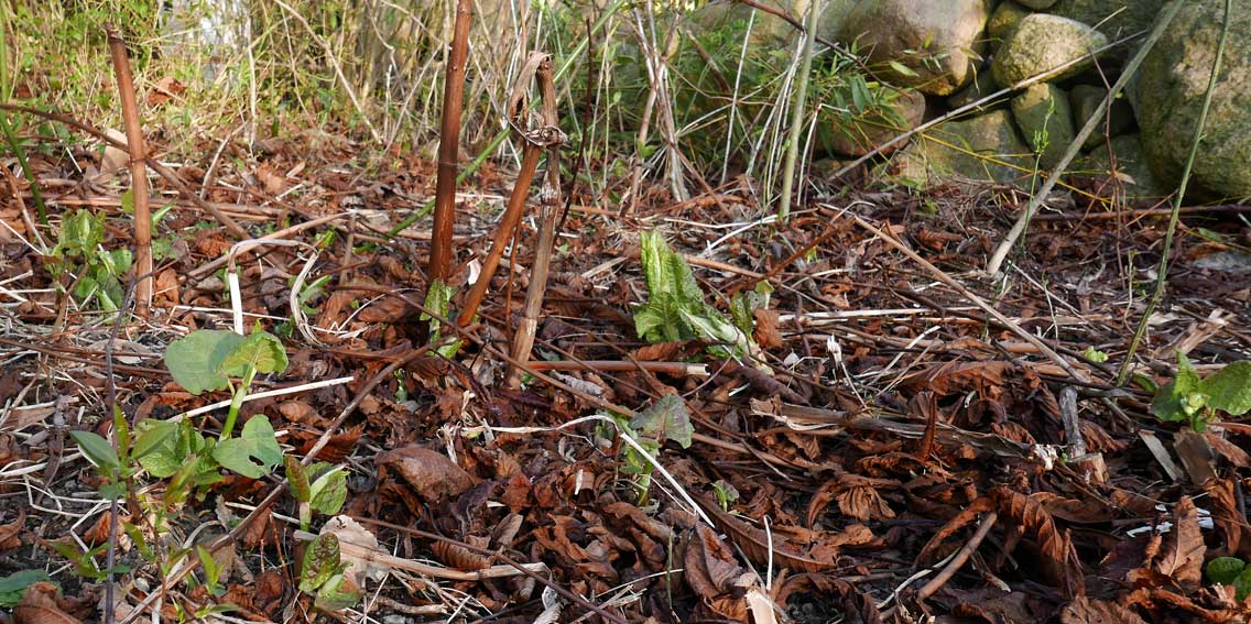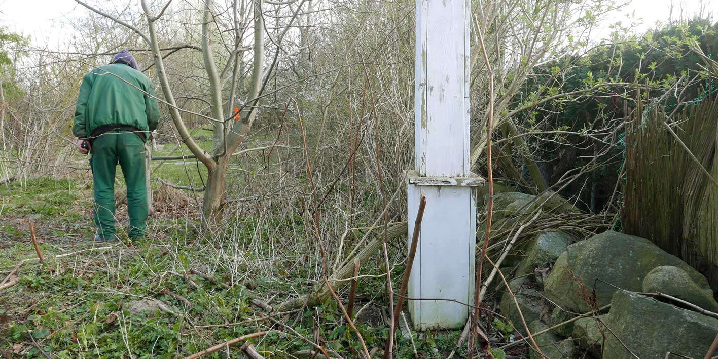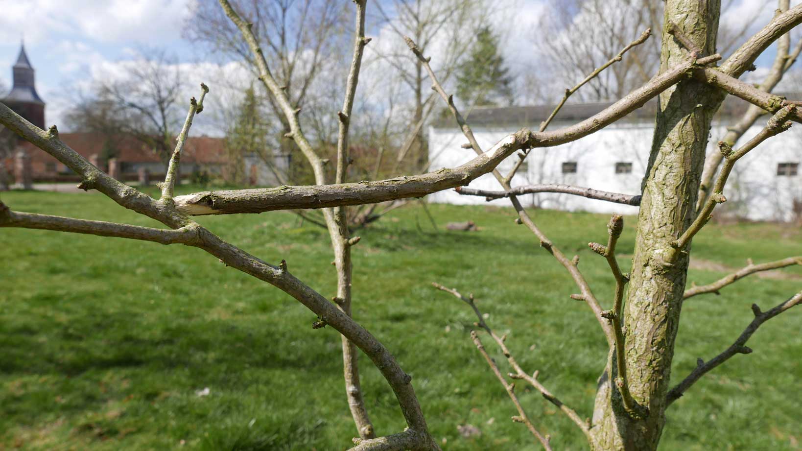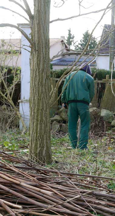 Hilfe den Ästen des Gynko dass er schön wächst gespreitzt auch den Augen.