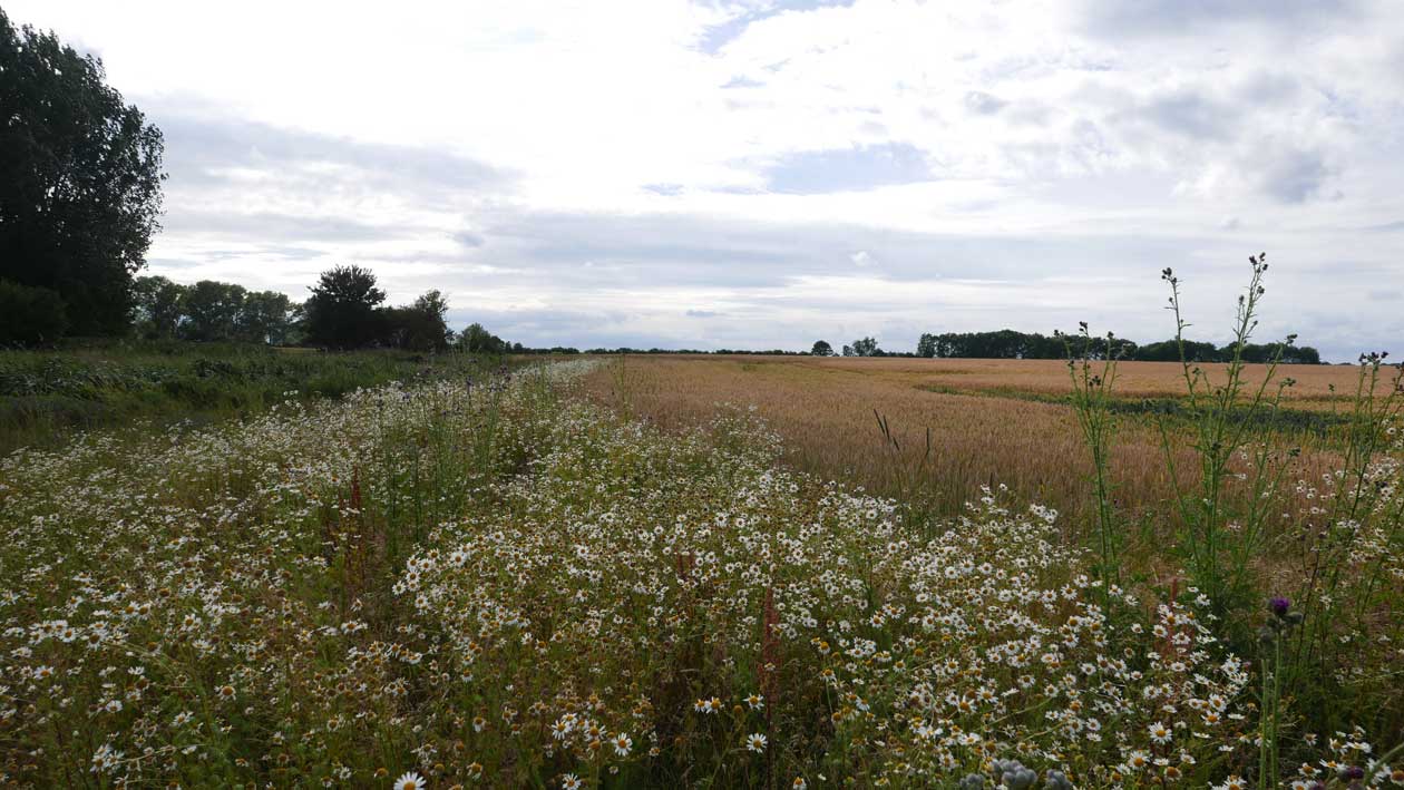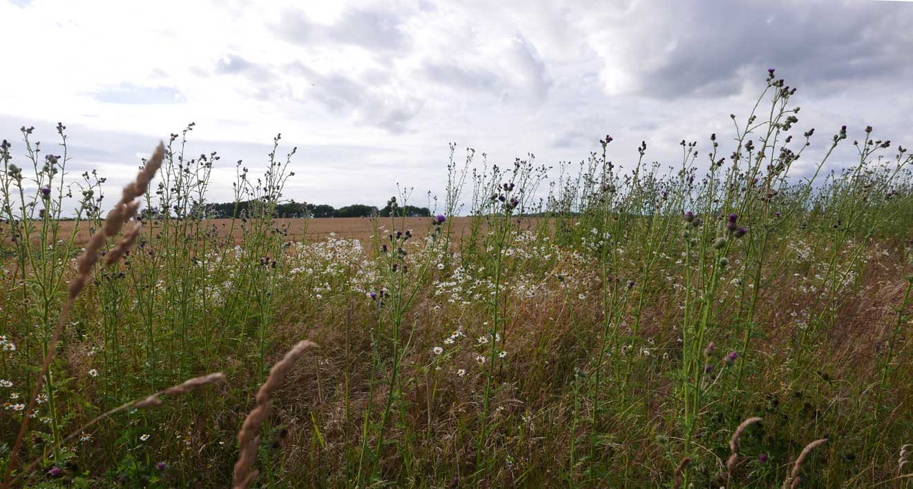 und übrig nun ist von der Blumenwiese für die Bienen ohne die nichts mehr geht, aus Brüssel gefördert im letzten Jahr. Aber mit Auflagen zur Mahd.