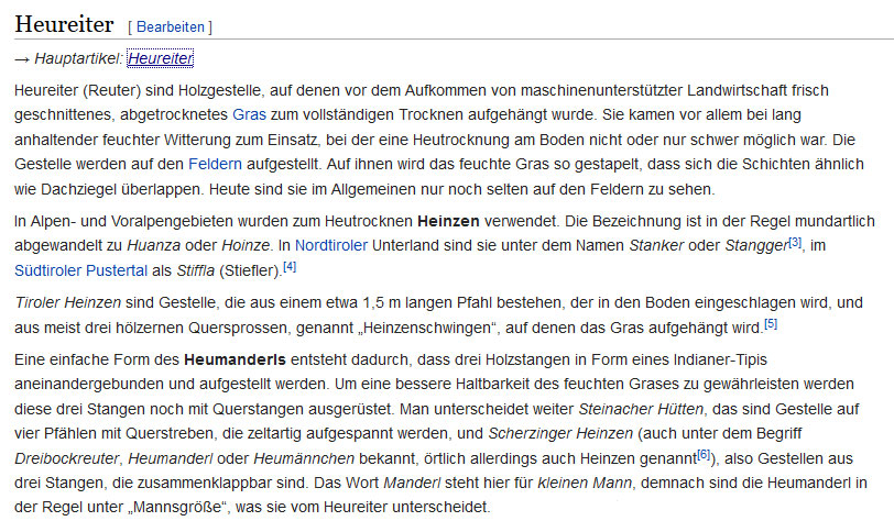 (hergekommen ursprünglich über München aus dem Allgäu dort: Heubock für den zweiten Schnitt (Grummet)