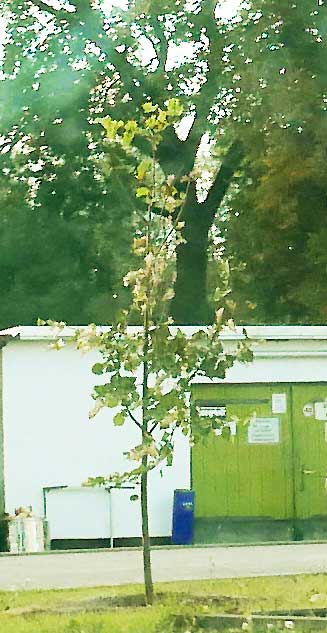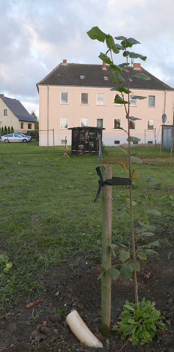und schon entseht eine neue kleine Linde. Am öffentlichen Ort, wo jeder vorbeikommt, rein und rausfahrend. Von Bürgerhand vorsichtig und heimlich gesetzt. Mal sehen ob sie durchkommt, neben den vergifteten auch von Bürgerhand. Wir sind einer Kampfzone zwischen Baum und Mensch.