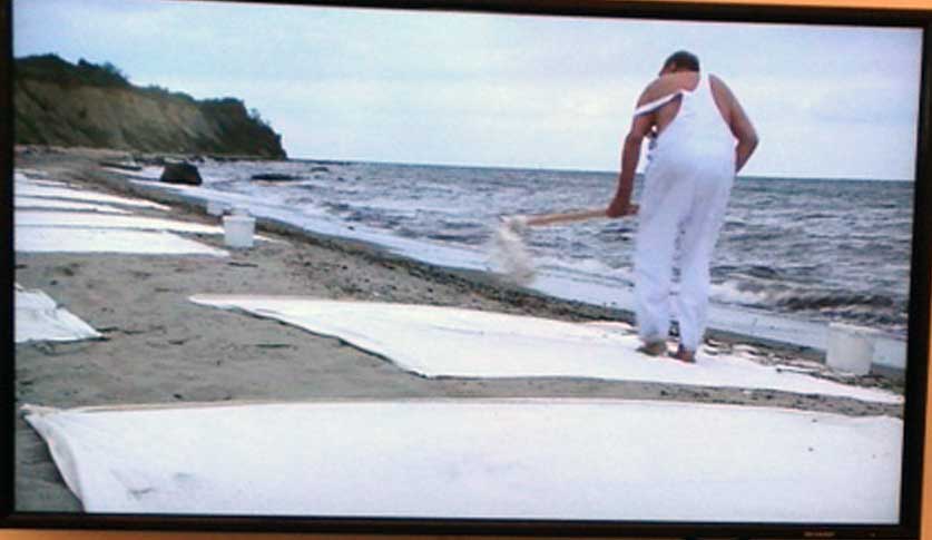 Die Ausstellung „Wustrower Tücher“ soll an seine Jugend zu Ende des Krieges erinnern. Damals musste er zusammen mit einem Freund angespülte Leichen des untergegangenen Schiffes „Cap Arcona“ vergraben. Er habe dort, wo er sie verscharrt hatte, Tücher auf den Sand gelegt und bemalt. So wolle er auf die Vergleichbarkeit der Vorgänge von 1945 mit den Dramen aufmerksam machen, die sich heute an den Mittelmeerstränden abspielen, sagte Uecker