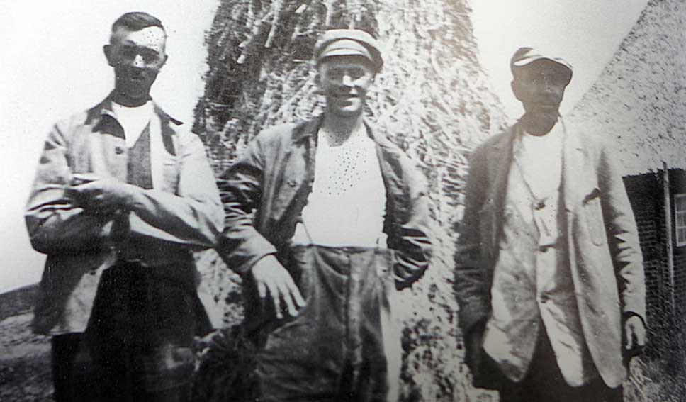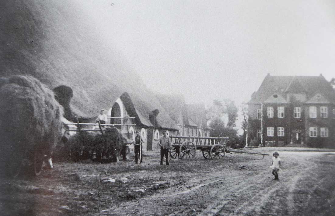eswar die Zeirt der letzten Pferde und aufkommenden Maschinen, Zusammen noch eine Familie und alles Wie unter einer Regie, umsichtig und Saat wie Ernte im Blick, Wind und Wetter, zusammen beratend nach der Lage und entscheidend nach Verantwortungen für das Ganze mit der Kirche in der Mitte des Dorfes.