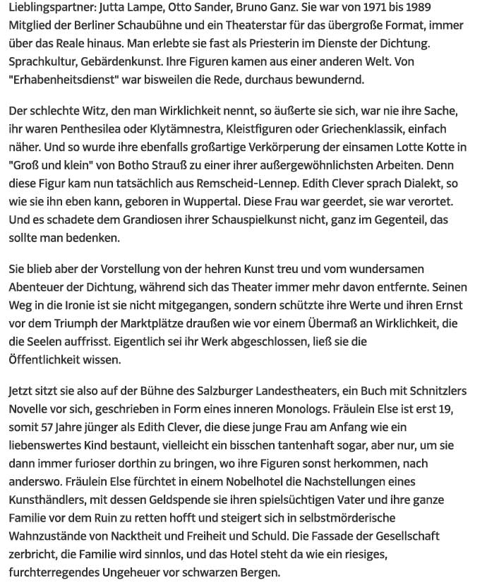 es war die Zeit als wir das Wort erkundeten - ohne diese keine Else wie diese. Und das geschah nicht mit S. Freud aber durch Kleist. Der Penthesilea auch, nun so in Not.