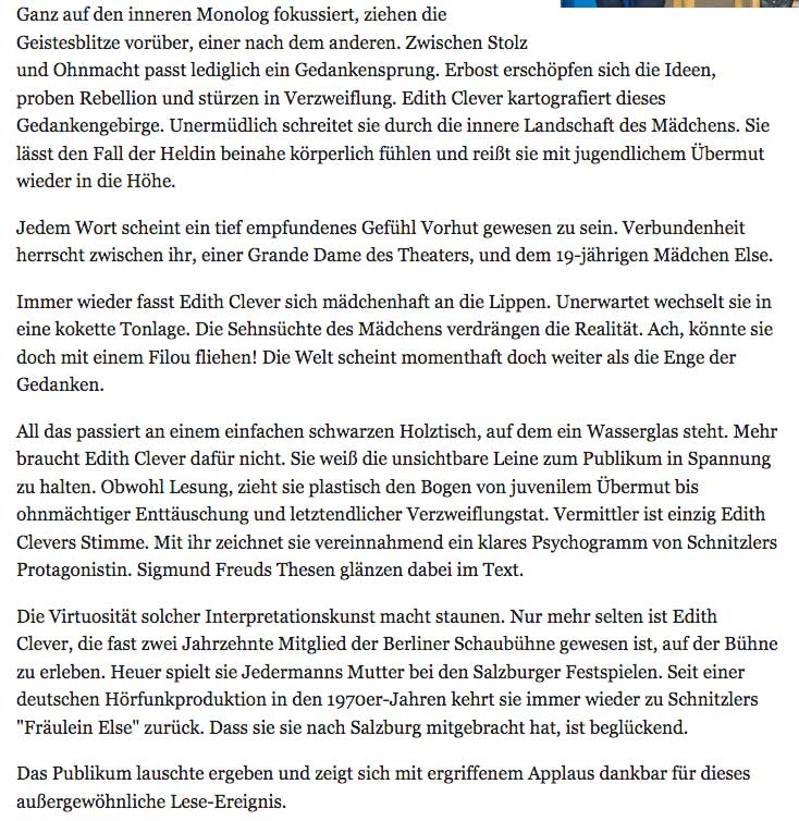Was einmal "Hörfunkproduktion" war, wurde zu einem Film, doch davon wissen die Salzburger Festspiel Dramaturgen nichts mehr und die Salzburger Nachrichten nichts von den Monologen vor 30 Jahren. Was von Salzburg einmal übrig bleiben wird, wenn von der Geschichte der Menschen geschrieben wird, dem Film auch des Traums, was sonst, hier festgehehalten und so gerettet (1994).
