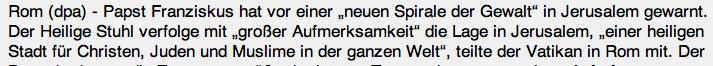 wie sagte der nachdenkliche Tom Segev aus Israel zuletzt: in Jerusalem hat alles immer eine sehr symbolische Bedeutung