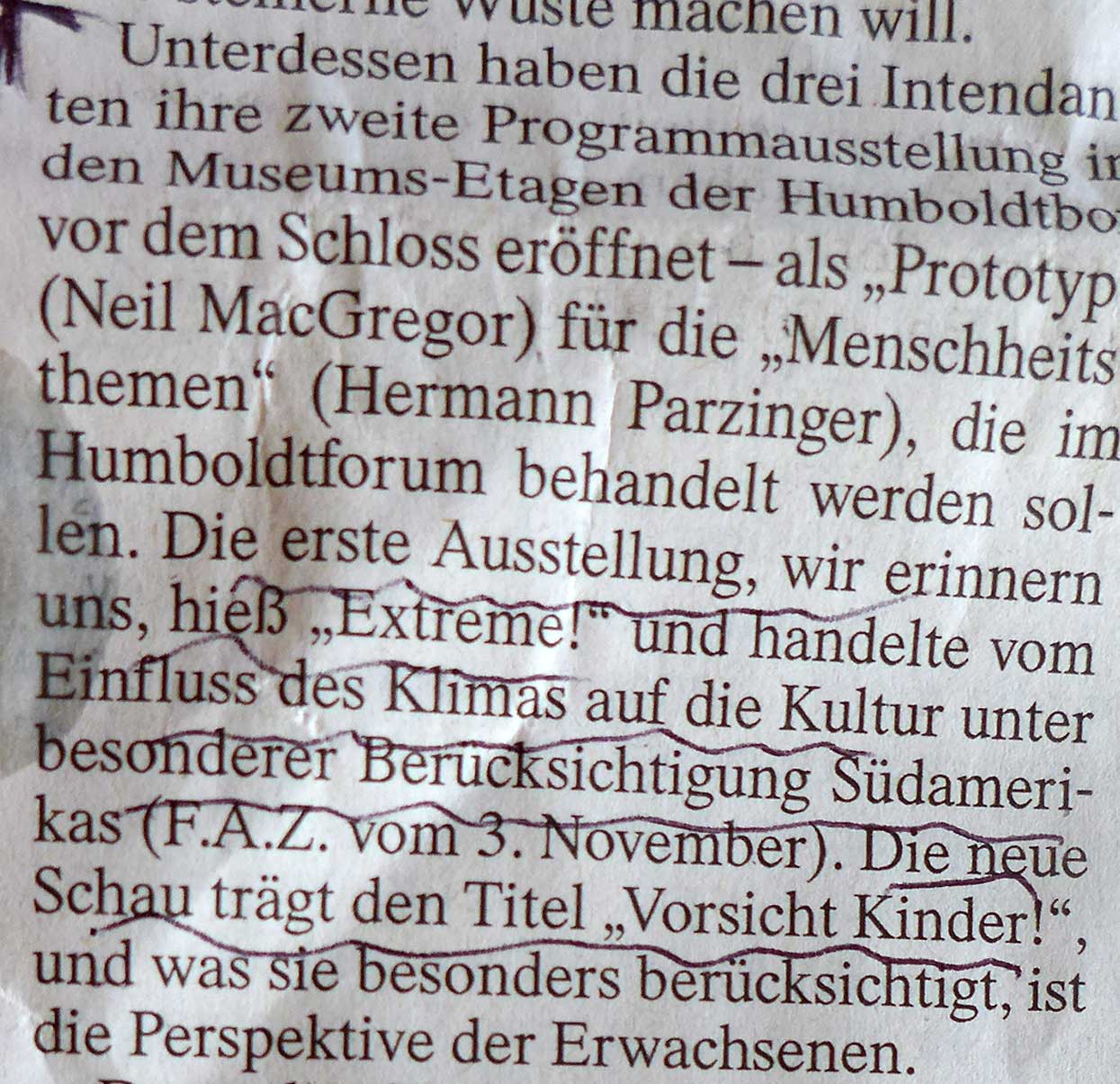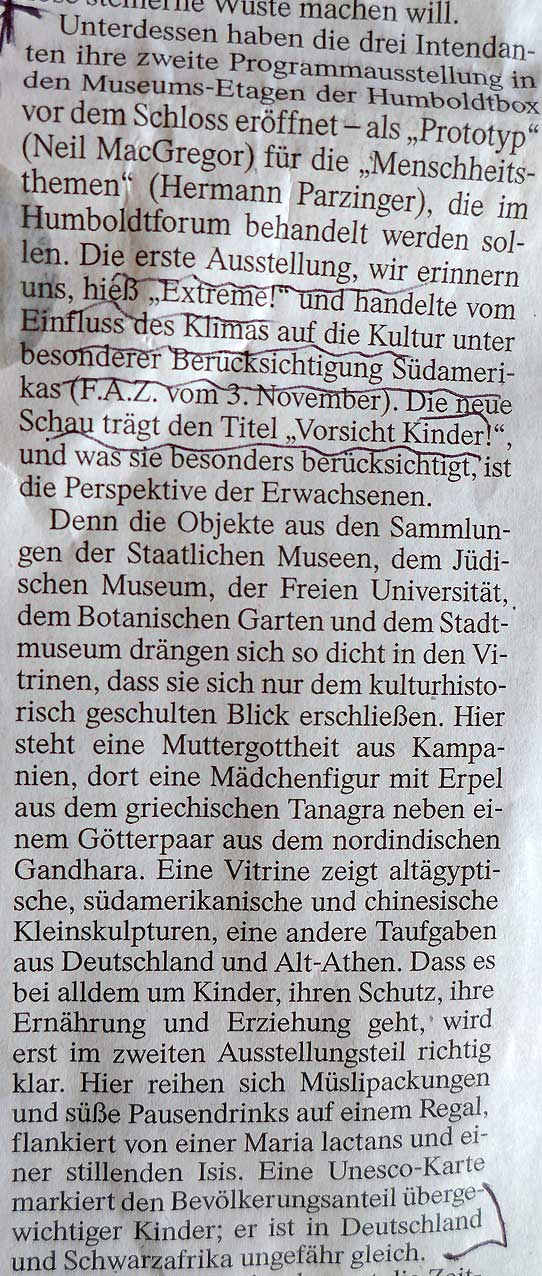 Die FAZ zu den Plänen das Haus im Zentrum Berlins, früher Schloss genannt und durch Jahrhunderte gewachsen, dann weggeräumt und nun wieder als Bau aus Beton mit historischer Maske entstehend. Mit den Fragen an uns: was wird da drin sein. Das Gesicht darunter.