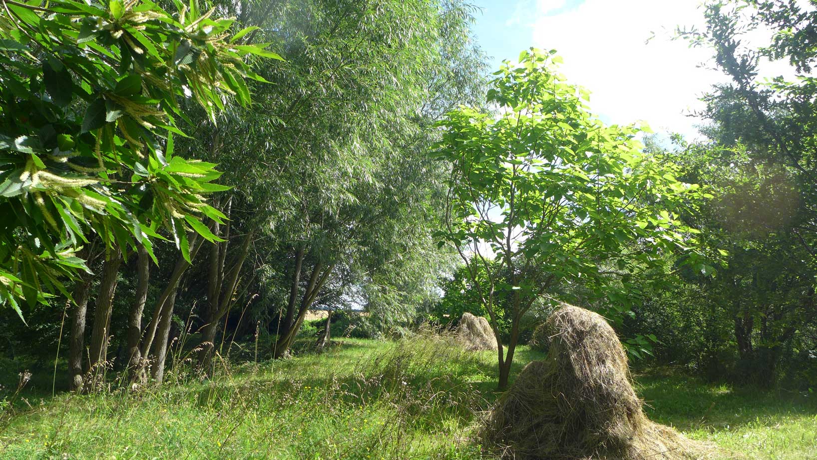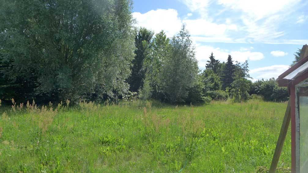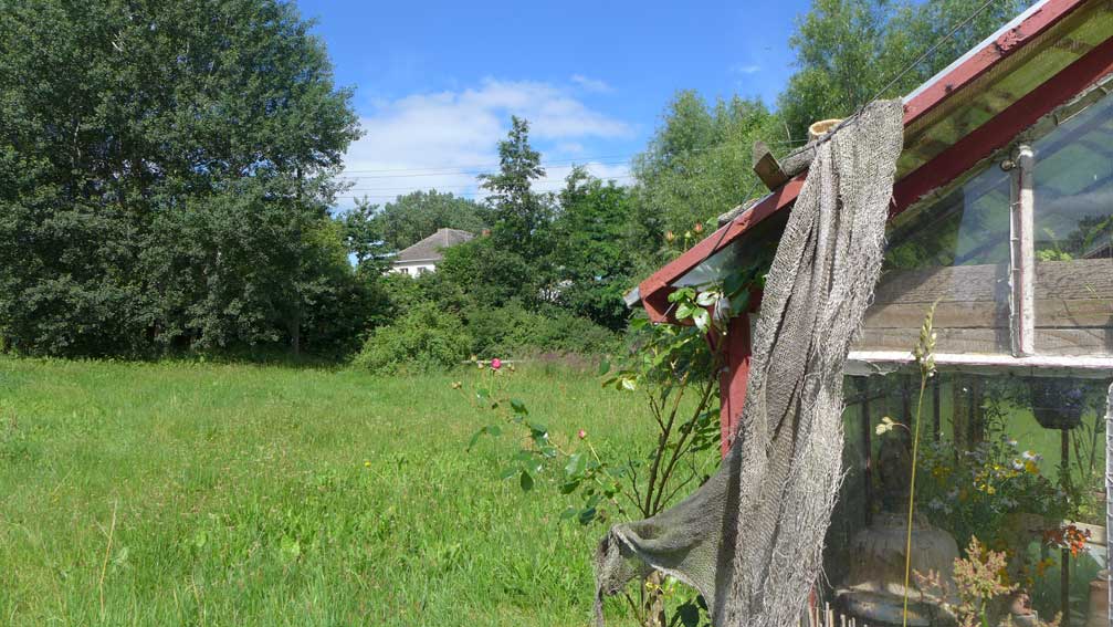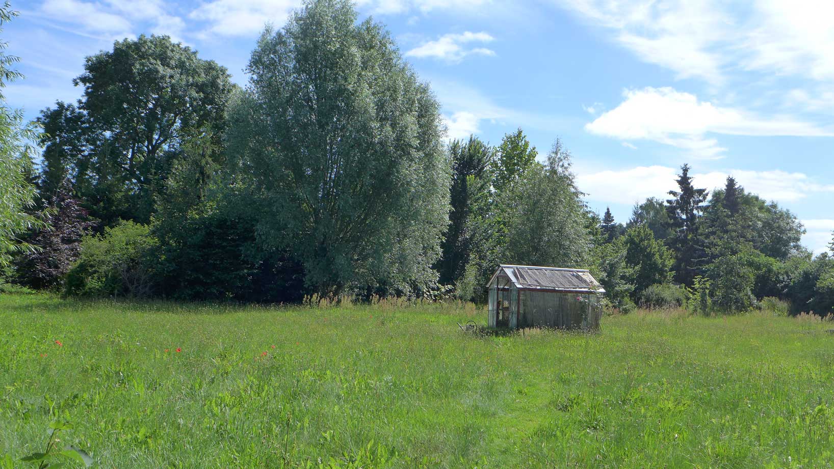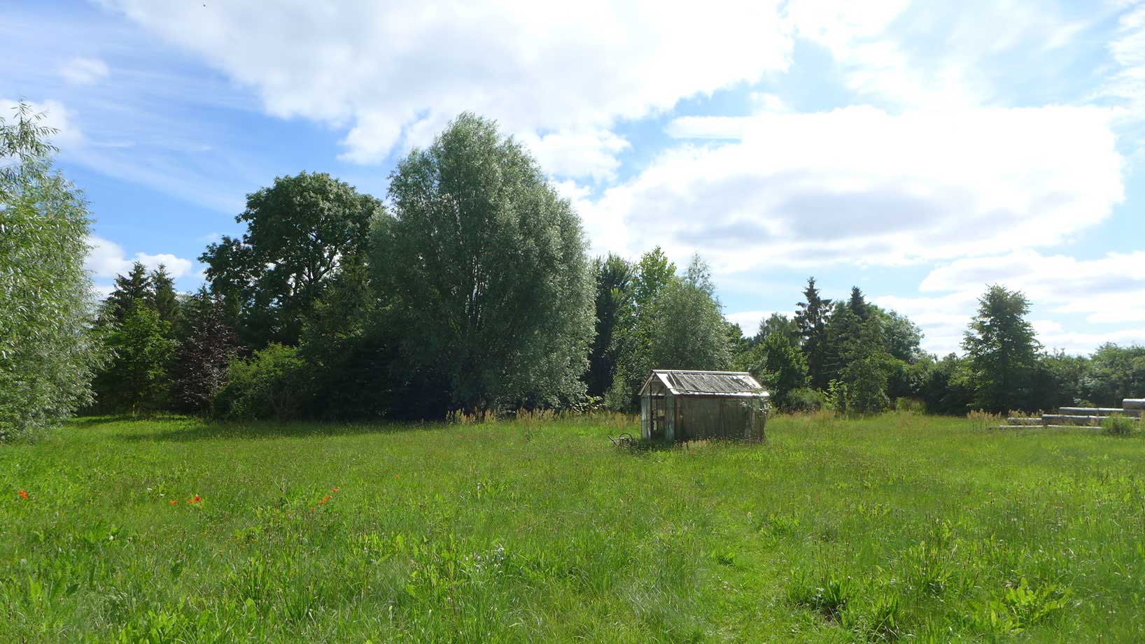 gebeten, gebettelt, den Graben dort wieder aufzumachen, Flurerneuerung nein, der Bürgermeister ohne, die Bäume wieder drumherum, Inhalt geben , ohne, Rohre der LPG als Mass und alles andere weg? das Öl unter dem Rasen - das Glashaus hilft darüber.