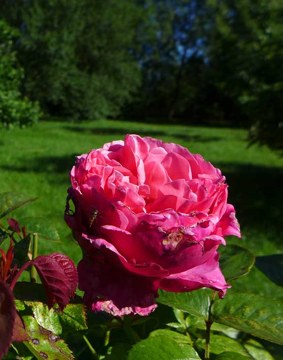 die Kastanie vor dem Haus, dem schon aufgegebenen, von den Frösten nach dem Winter lange ohne neues Grün, nun steht sie wieder in neuem Leben.