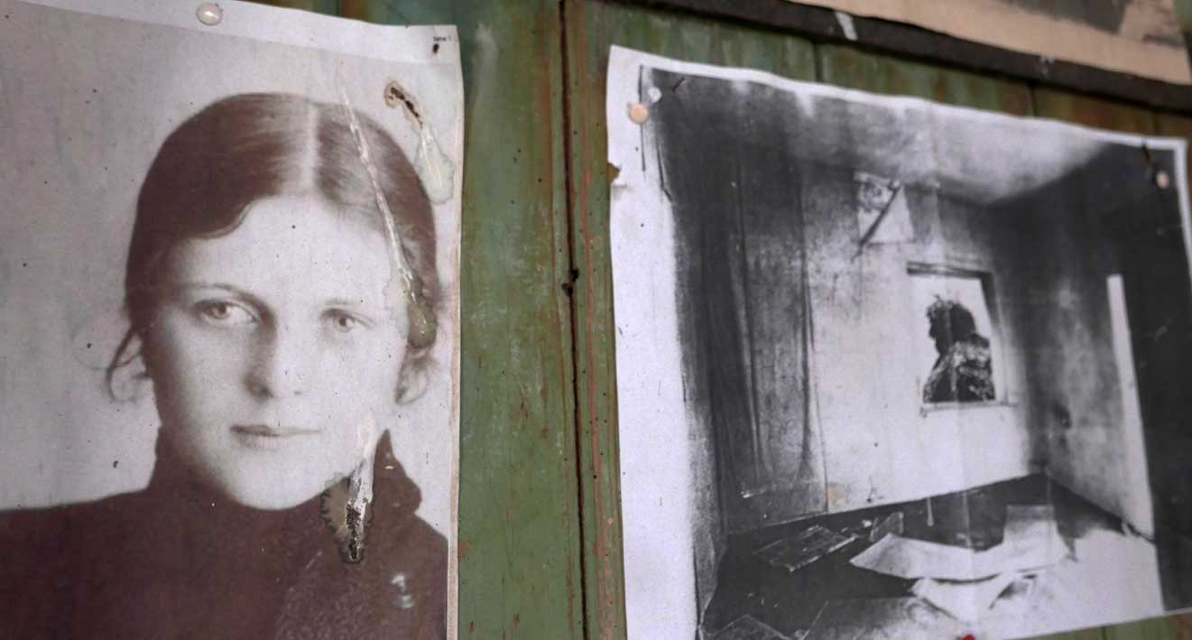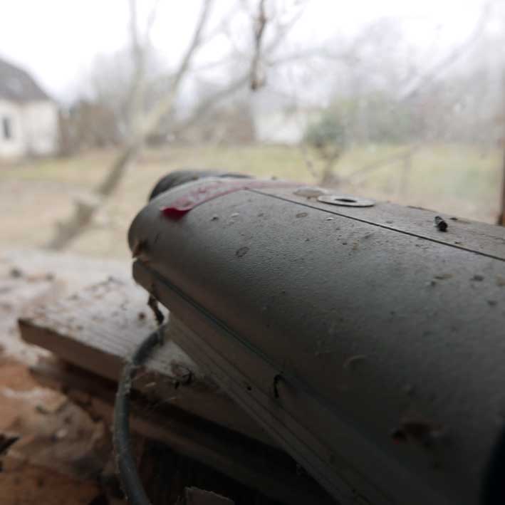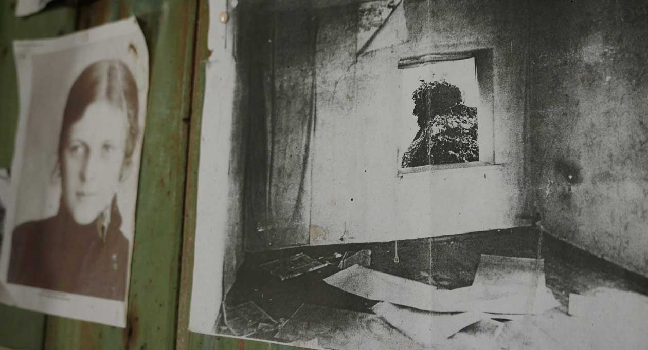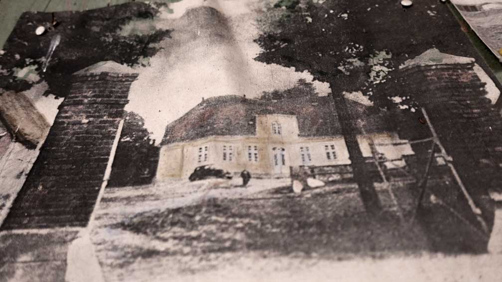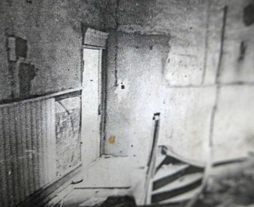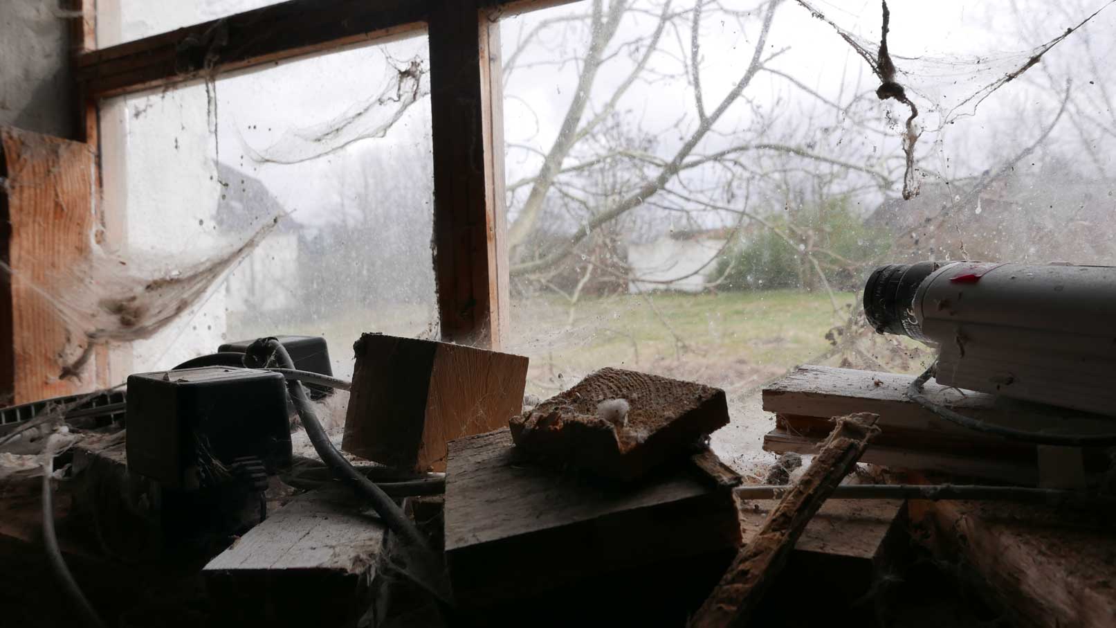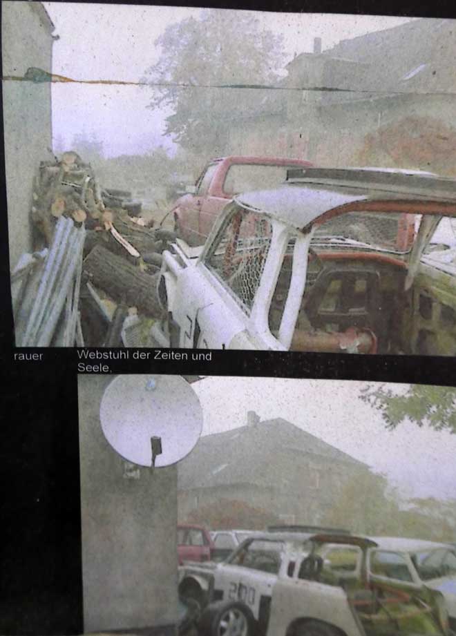 aus der Halle, wo die Kamera steht im Fenster des Staubs der ersten Stunde wieder hier, an der Wand dies Bild auch