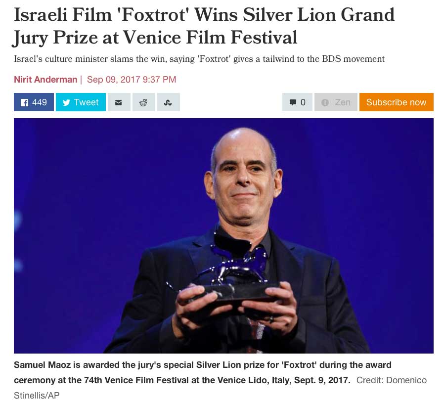 Following Oz's win, Regev said "Foxtrot" is the type of film that gives a tailwind to the Israel boycott movement.