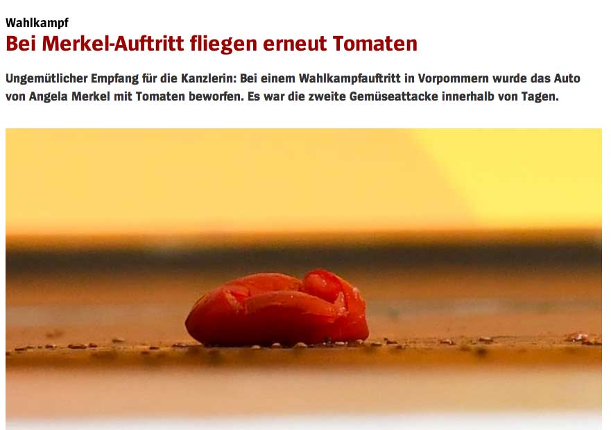 Einfahrt zu der Veranstaltung in Wolgast mit Tomaten beworfen.