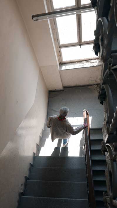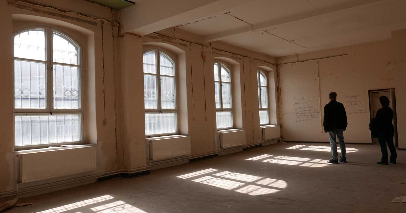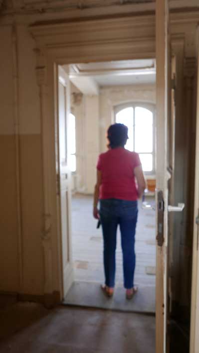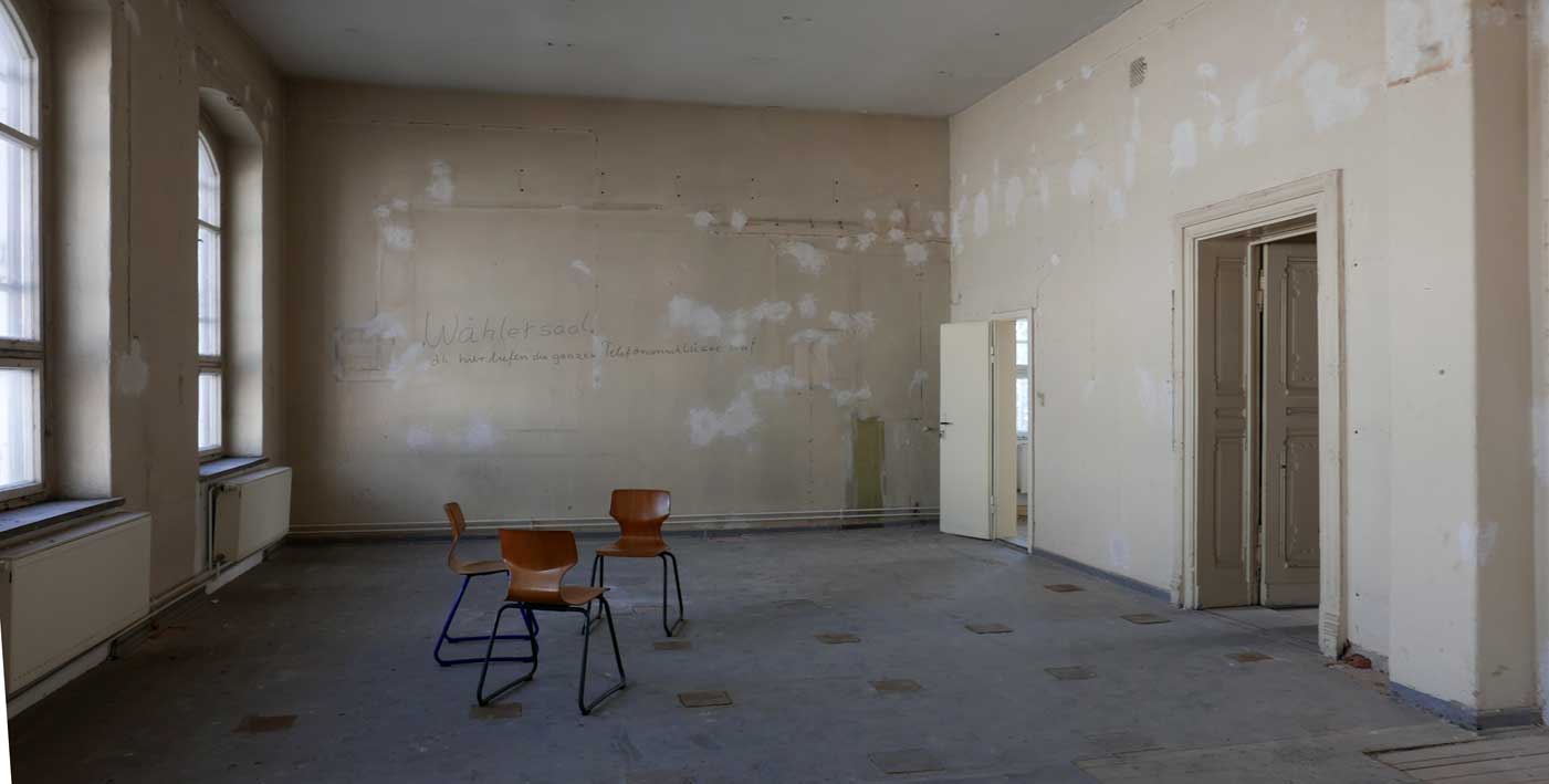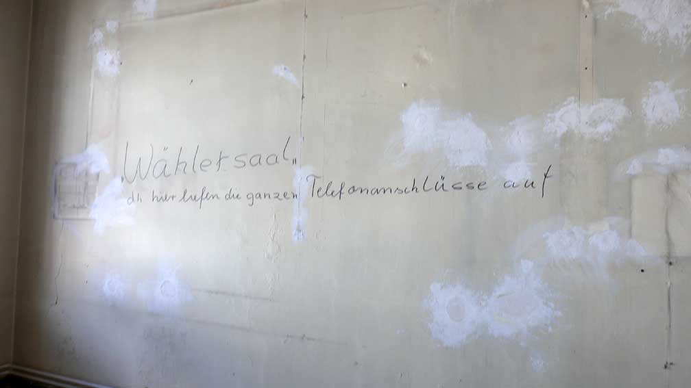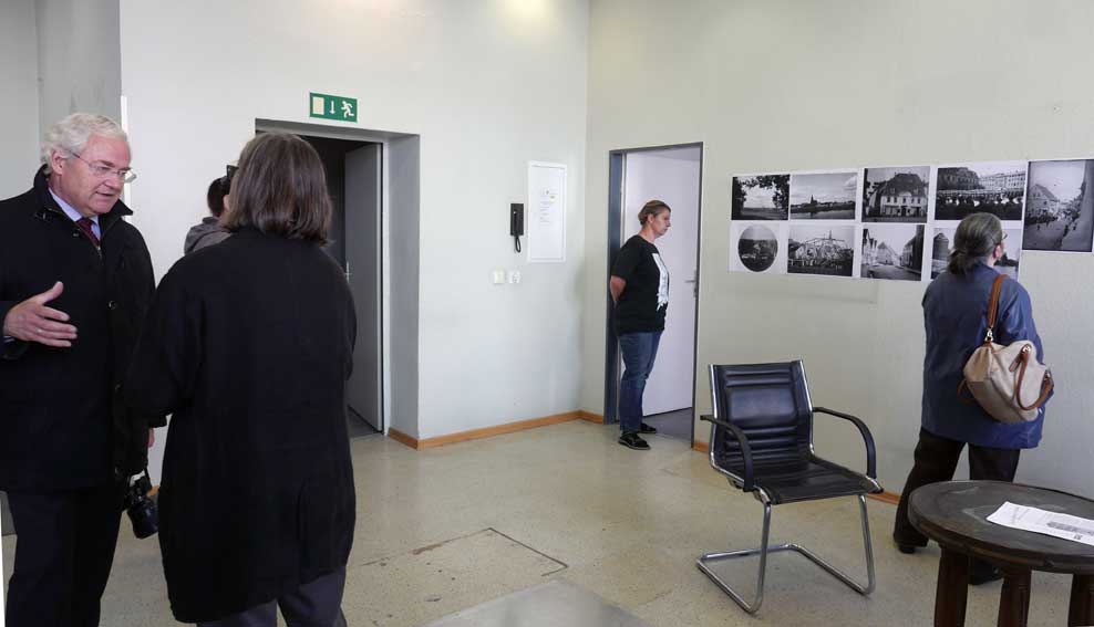 Hans Clemens hat als geübter Museumsmann aus dem Anlass der Offenen Tür diese Foto und Räume des Objekts mit Texten begleitet auch an den Wänden. Von Raum zuz Raum. Und so das leere Haus selbst vorgeführt.