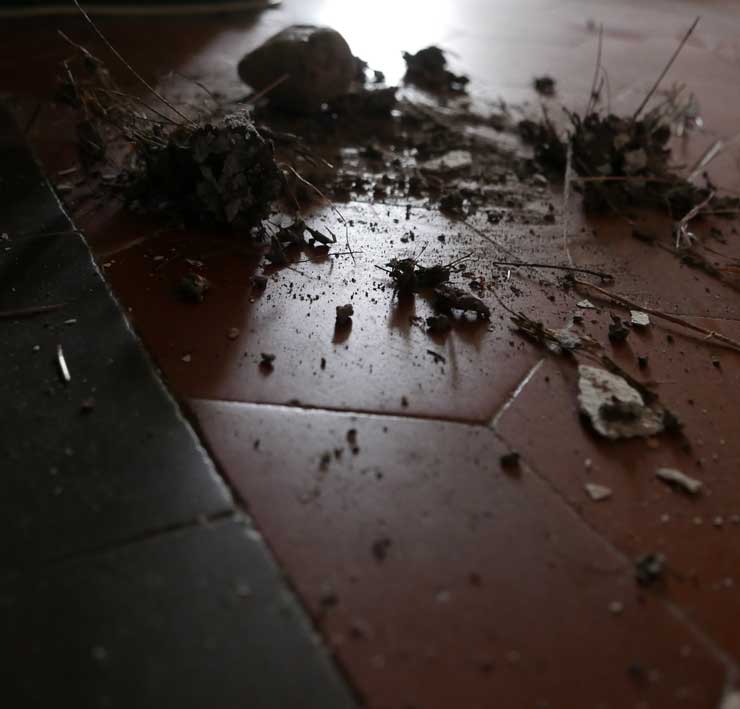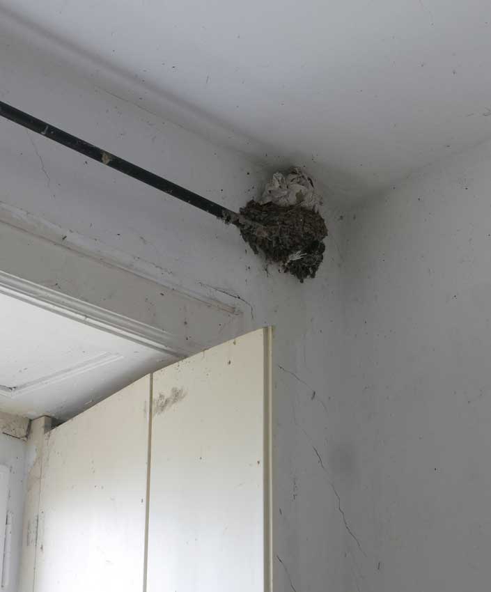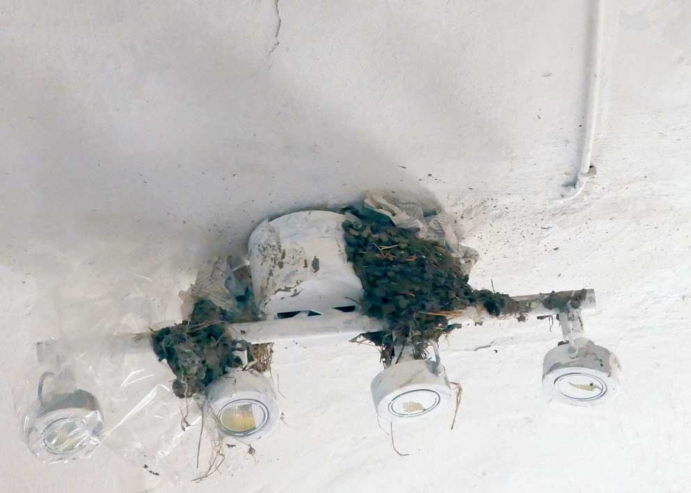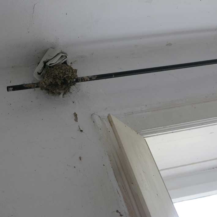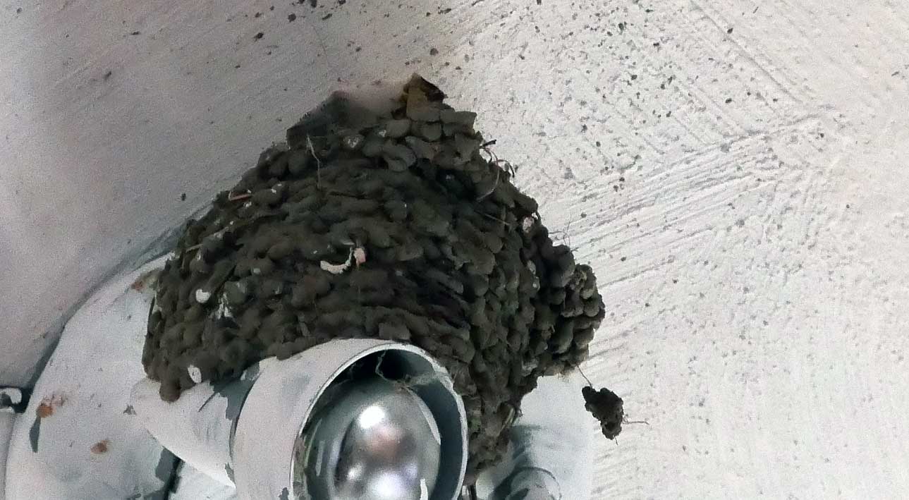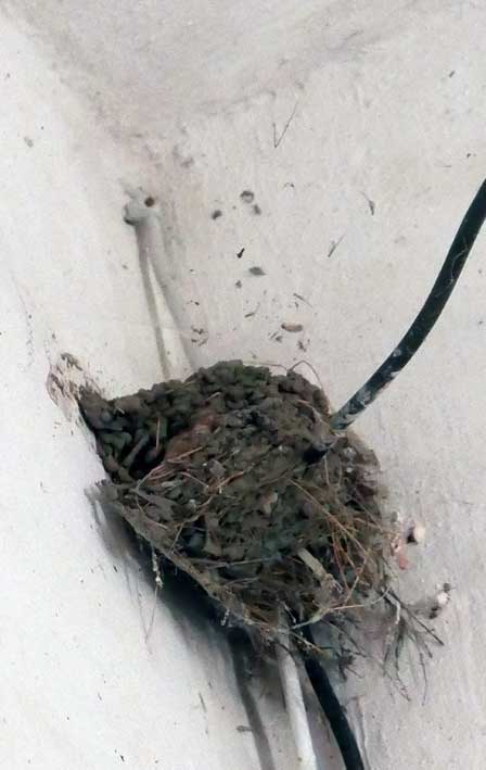 lange nichts zu sehen . Niemand . Dann um Ecke, am Treppen aufgang. Das Nest Schwalben.
